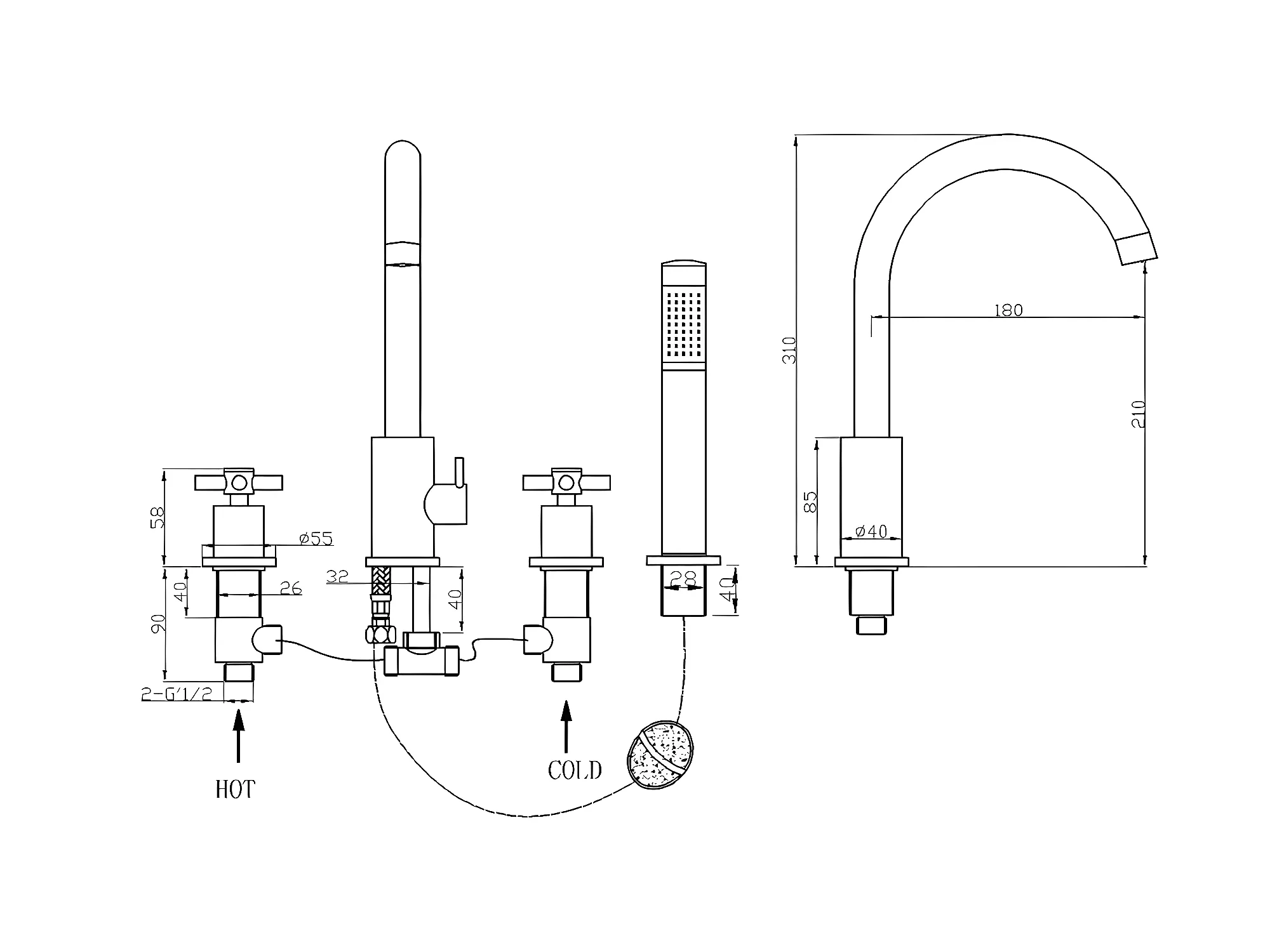 Robinet mélangeur bain-douche sur plage 4 trous chromé - Corbeau