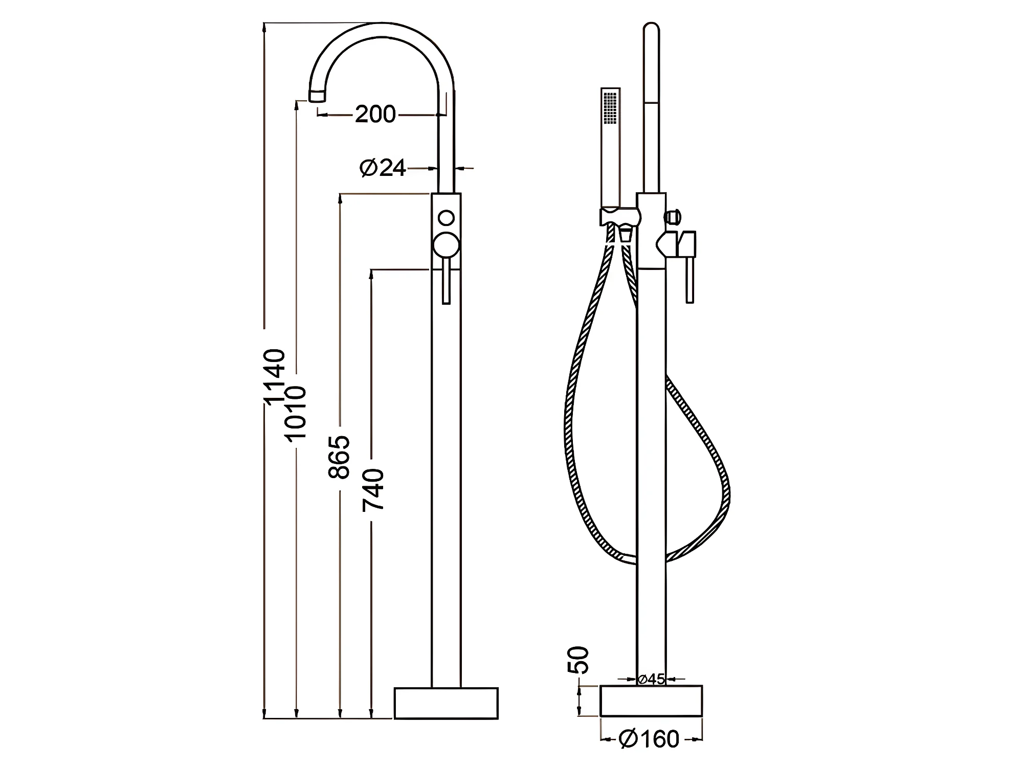 Robinet mitigeur baindouche sur pied DEBRIO noir mat