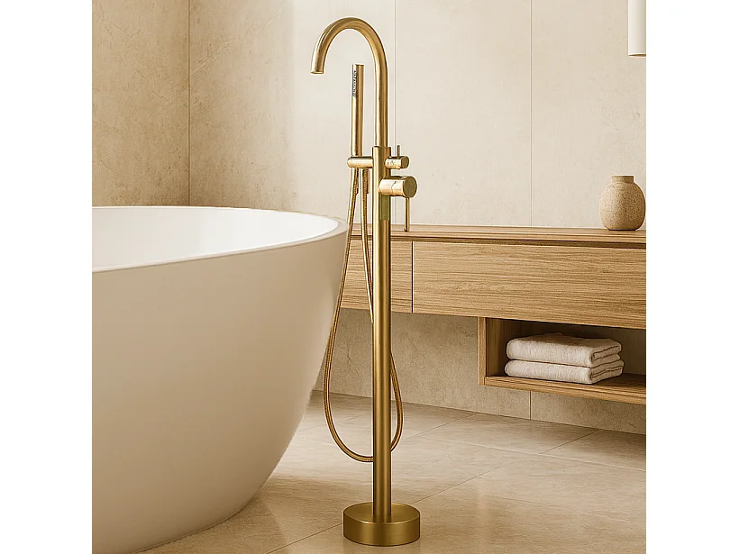 Robinet mitigeur baindouche sur pied DEBRIO or brossé