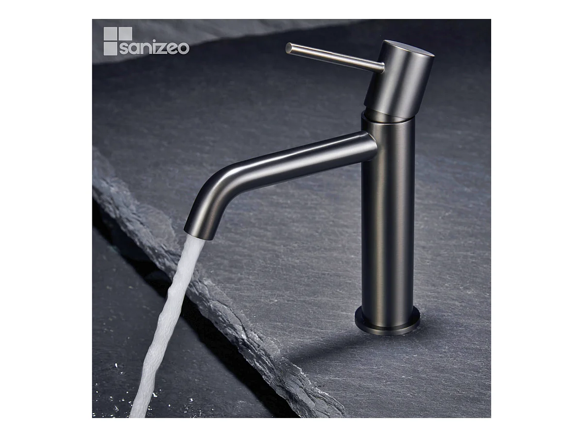 Mitigeur Lavabo Salle de Bain noir métal – Bec Bas Anti-Calcaire – Design Moderne - GENOVA IMEX
