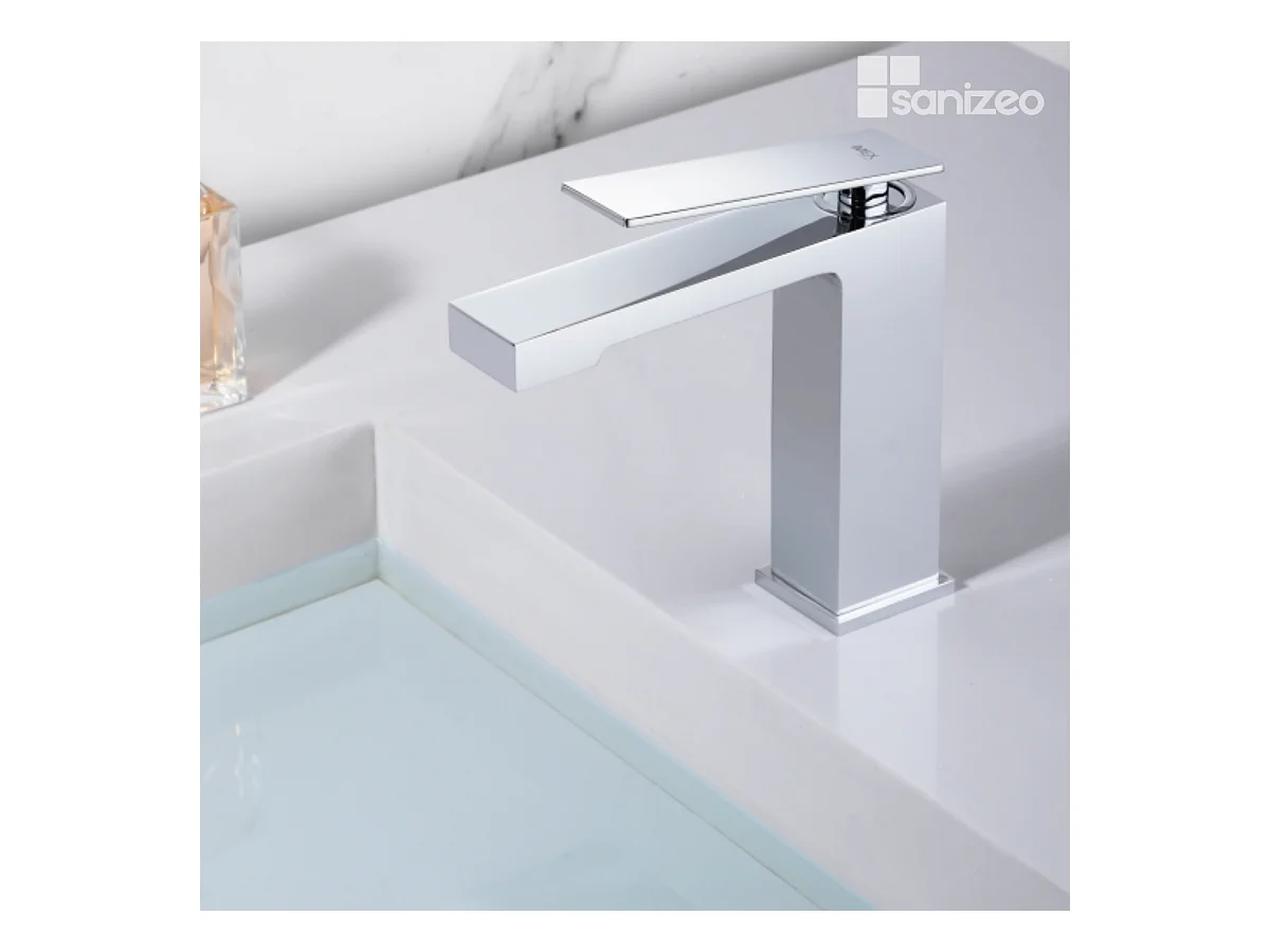 Mitigeur Lavabo Salle de Bain chromé – Bec Bas Anti-Calcaire – Design moderne - DINAMARCA IMEX