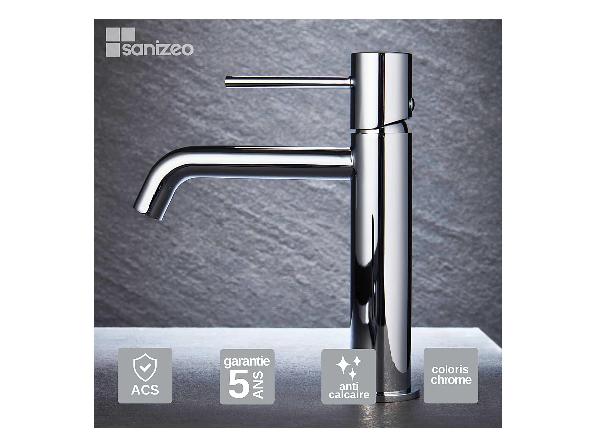 Mitigeur Lavabo Salle de Bain chromé – Bec Haut Anti-Calcaire – Design moderne - DELOS IMEX