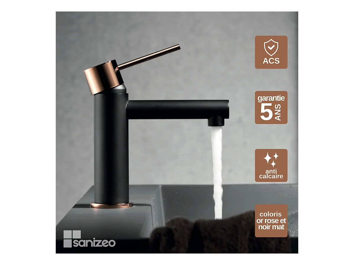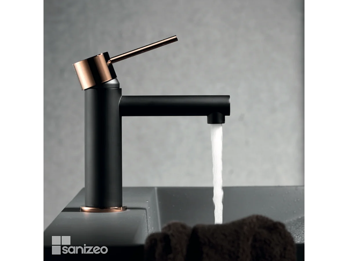 Mitigeur Lavabo Salle de Bain noir/or – Bec Bas Anti-Calcaire – Design Moderne - MILOS STICK IMEX
