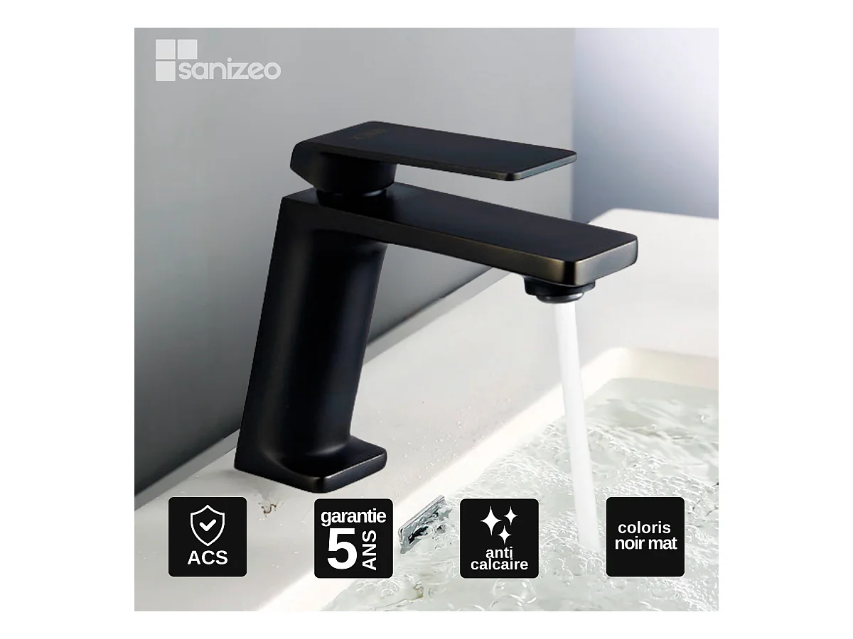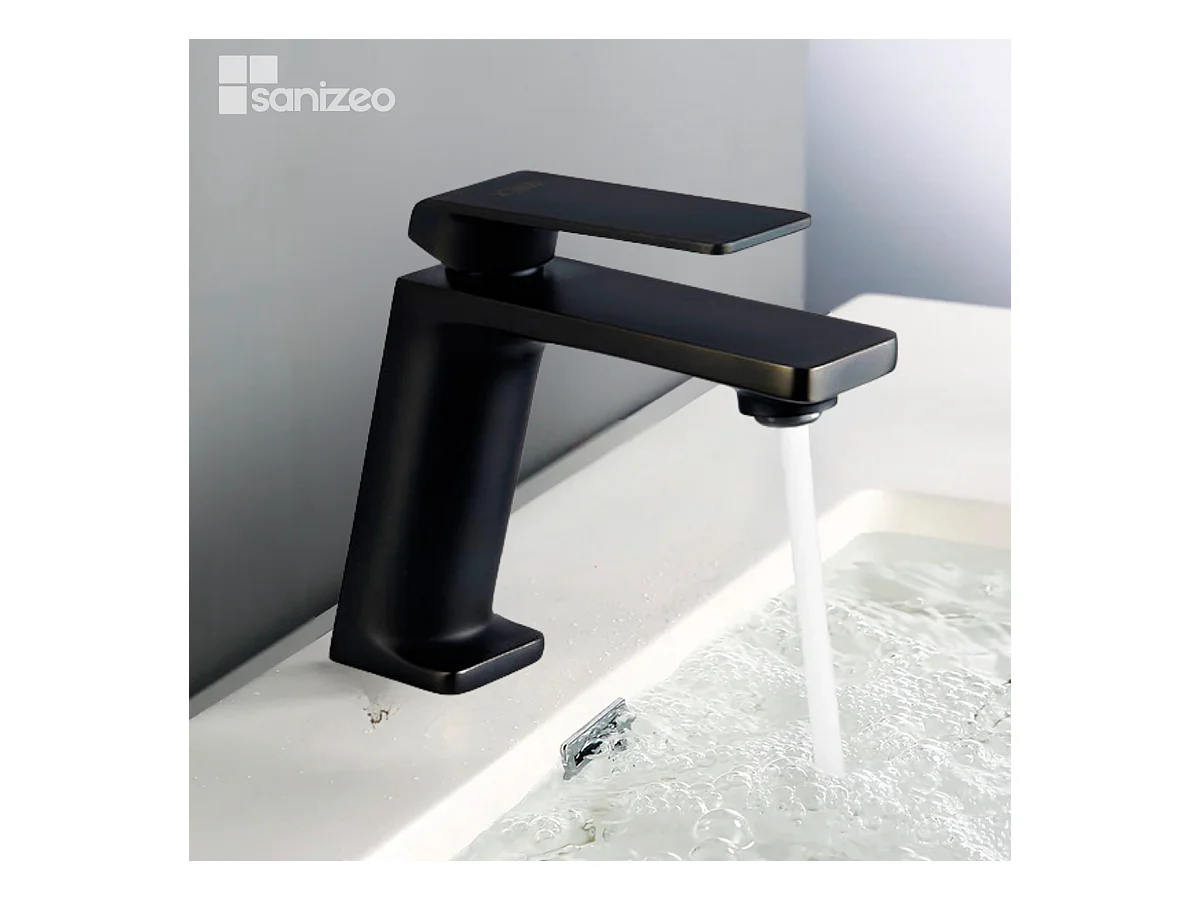 Mitigeur Lavabo Salle de Bain noir mat – Bec Bas Anti-Calcaire – Design Moderne - DINAMARCA IMEX