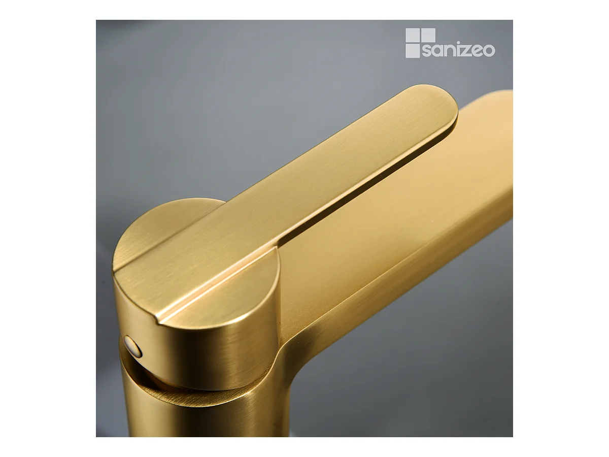 Mitigeur Lavabo Salle de Bain or brossé – Bec Bas Anti-Calcaire – Design moderne - OLIMPO IMEX
