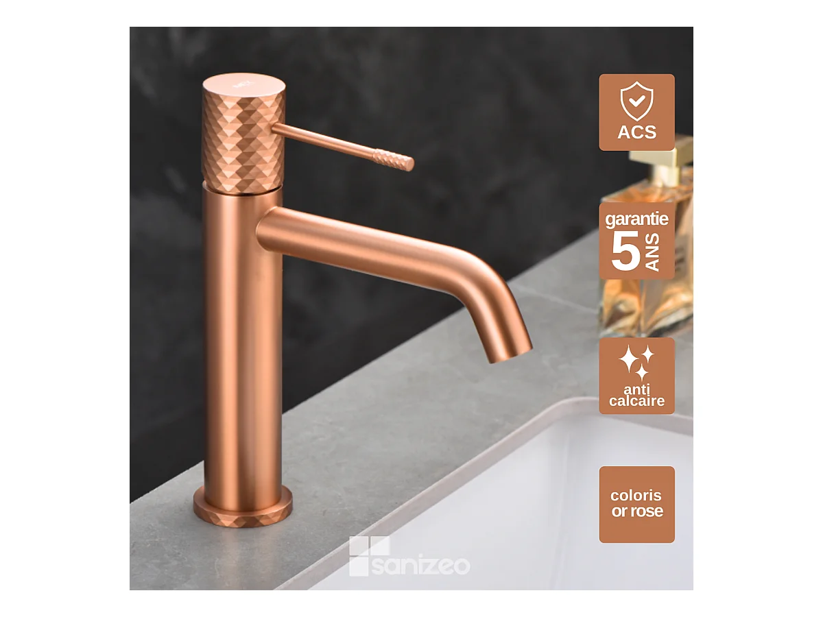 Mitigeur Lavabo Salle de Bain or rose cuivré – Bec Haut Anti-Calcaire – Design moderne - PISA IMEX