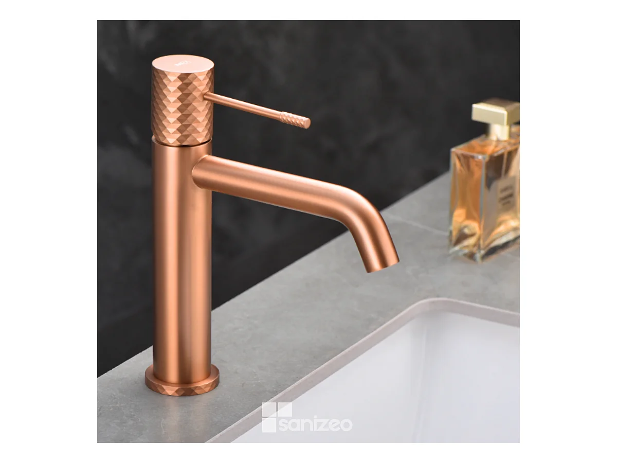 Mitigeur Lavabo Salle de Bain or rose cuvré – Bec Haut Anti-Calcaire – Design Moderne - NAPOLES IMEX