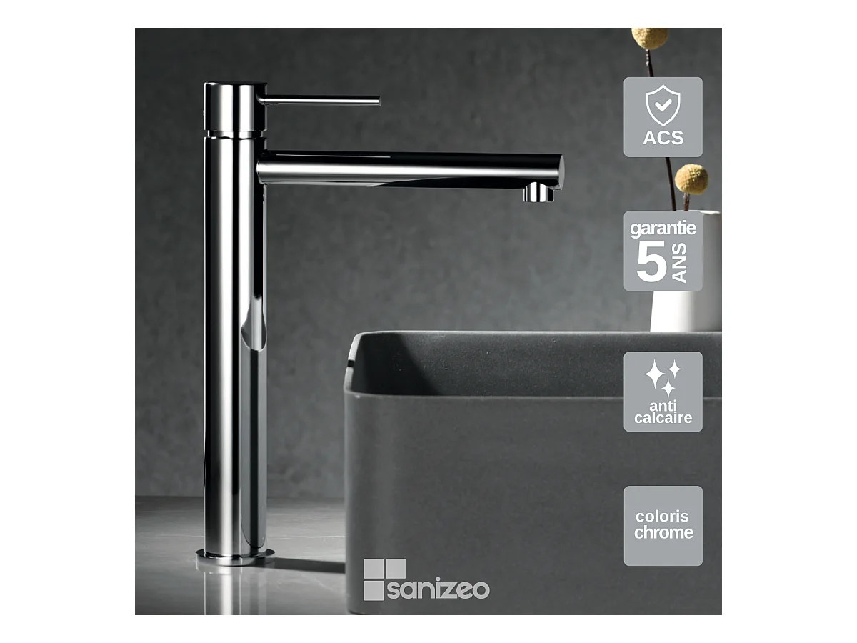 Mitigeur Lavabo Salle de Bain chromé – Bec Haut Anti-Calcaire – Design Moderne - MILOS STICK IMEX