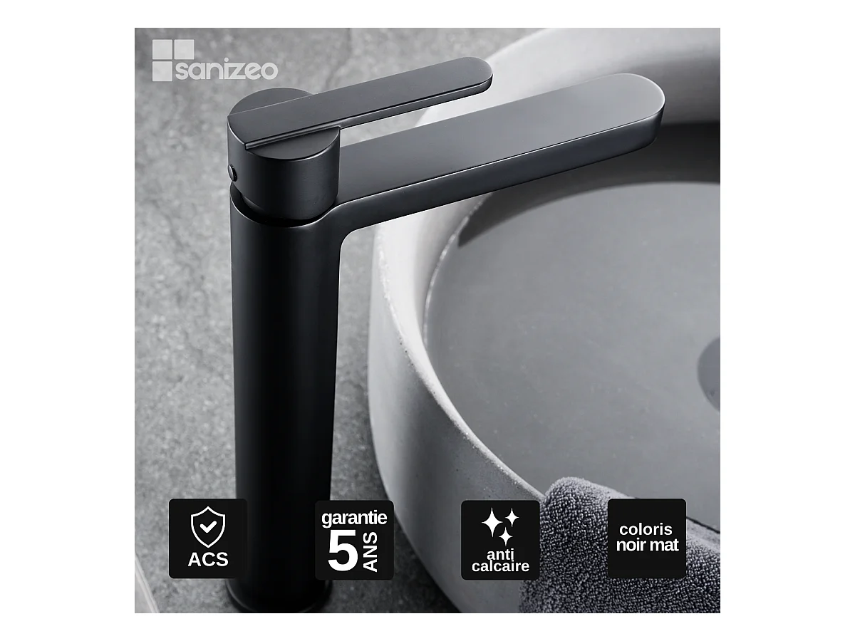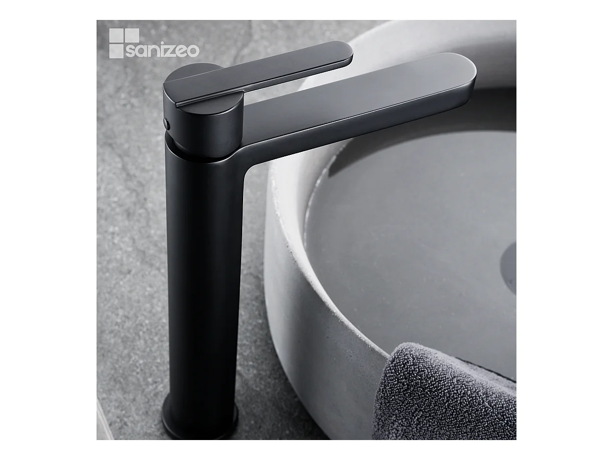 Mitigeur Lavabo Salle de Bain noir mat – Bec Haut Anti-Calcaire – Design moderne - ROMA IMEX