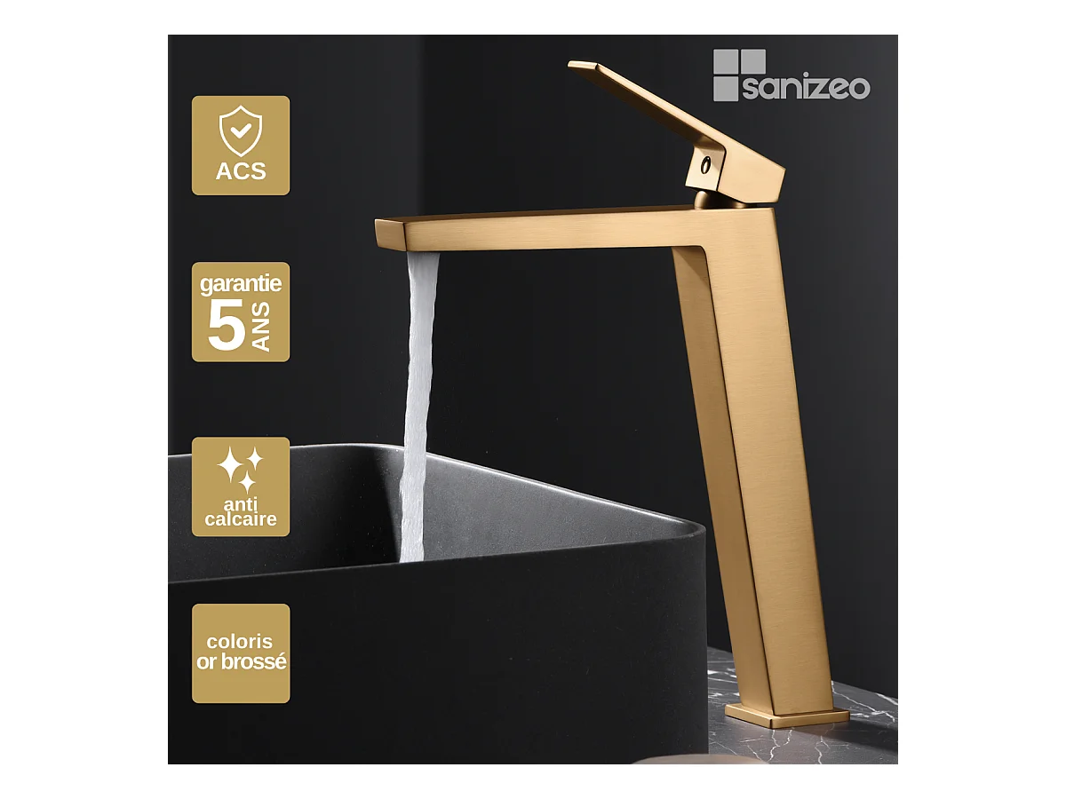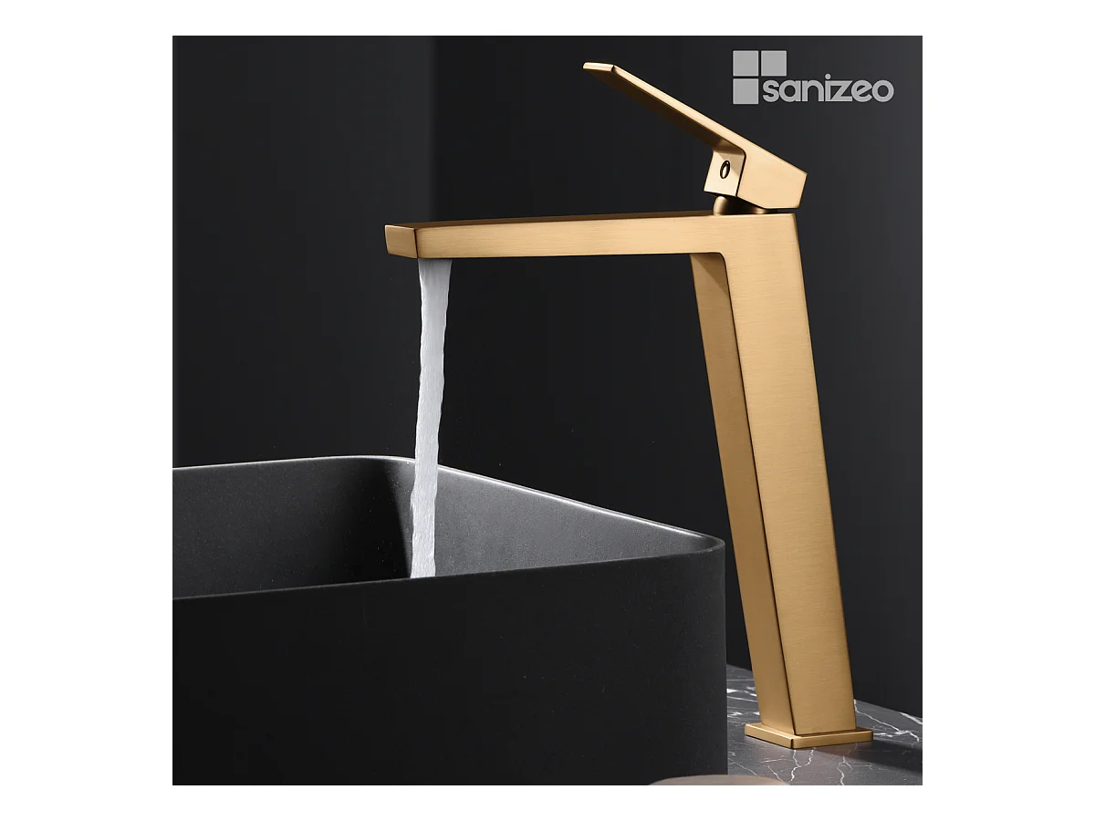 Mitigeur Lavabo Salle de Bain or brossé – Bec Haut Anti-Calcaire – Design moderne - ART IMEX