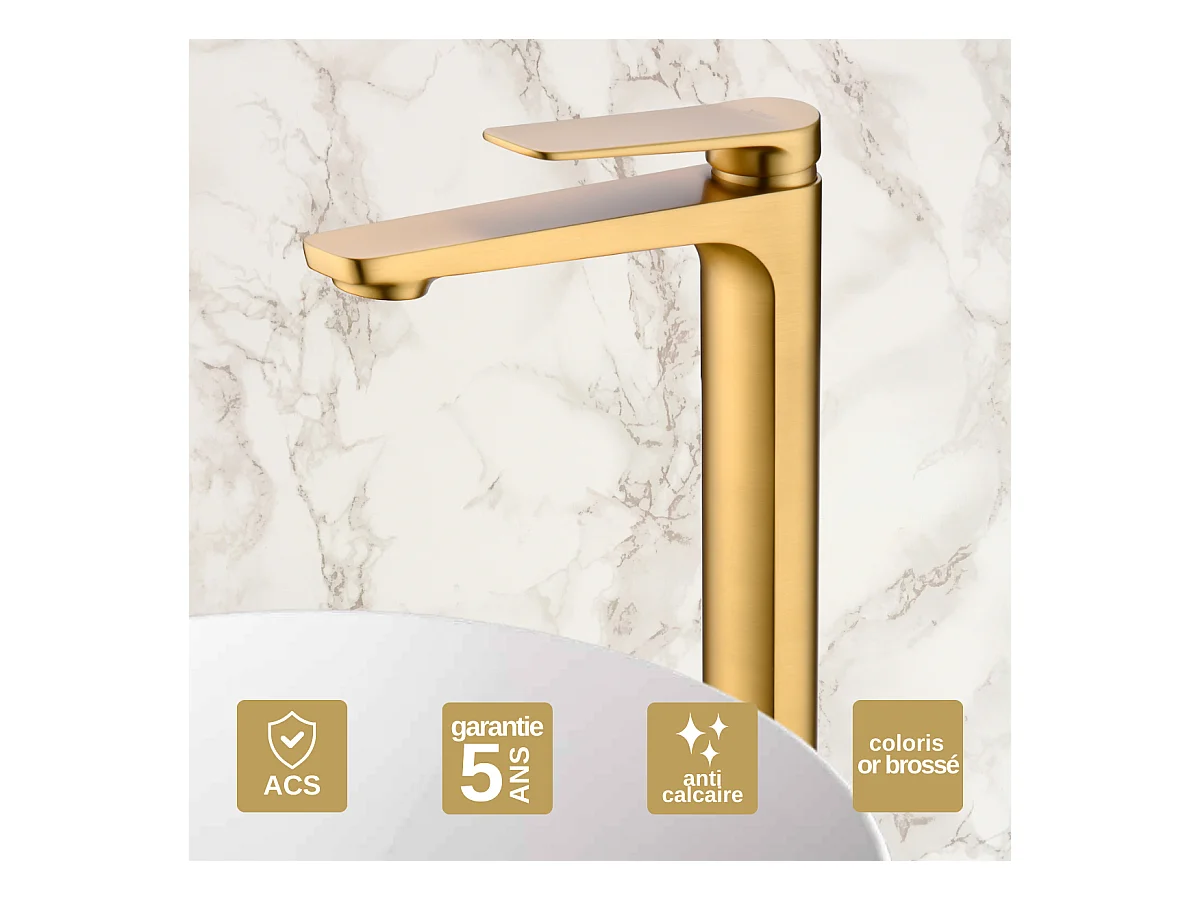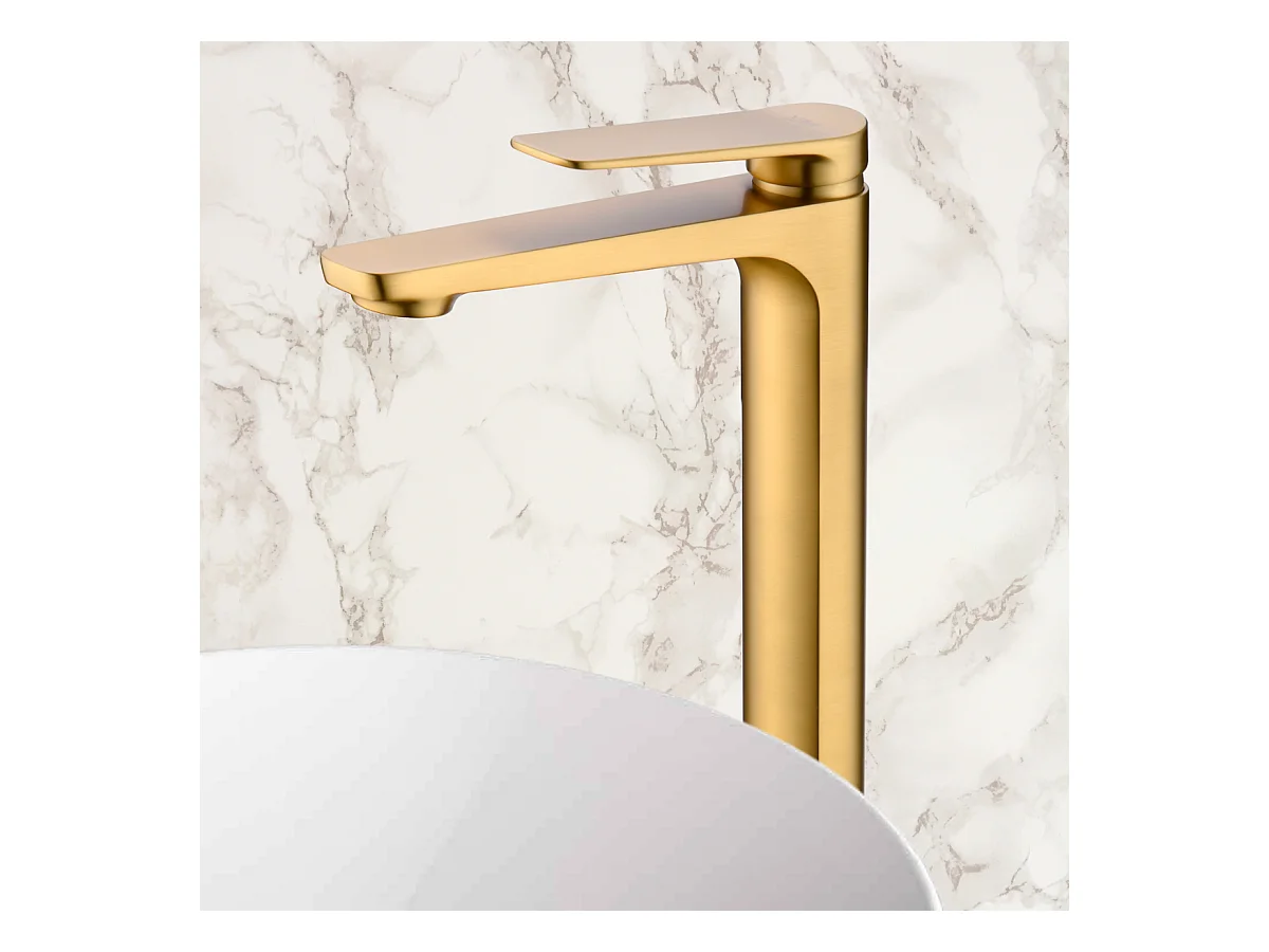 Mitigeur Lavabo Salle de Bain or brossé – Bec Haut Anti-Calcaire – Design Moderne - NAPOLES IMEX