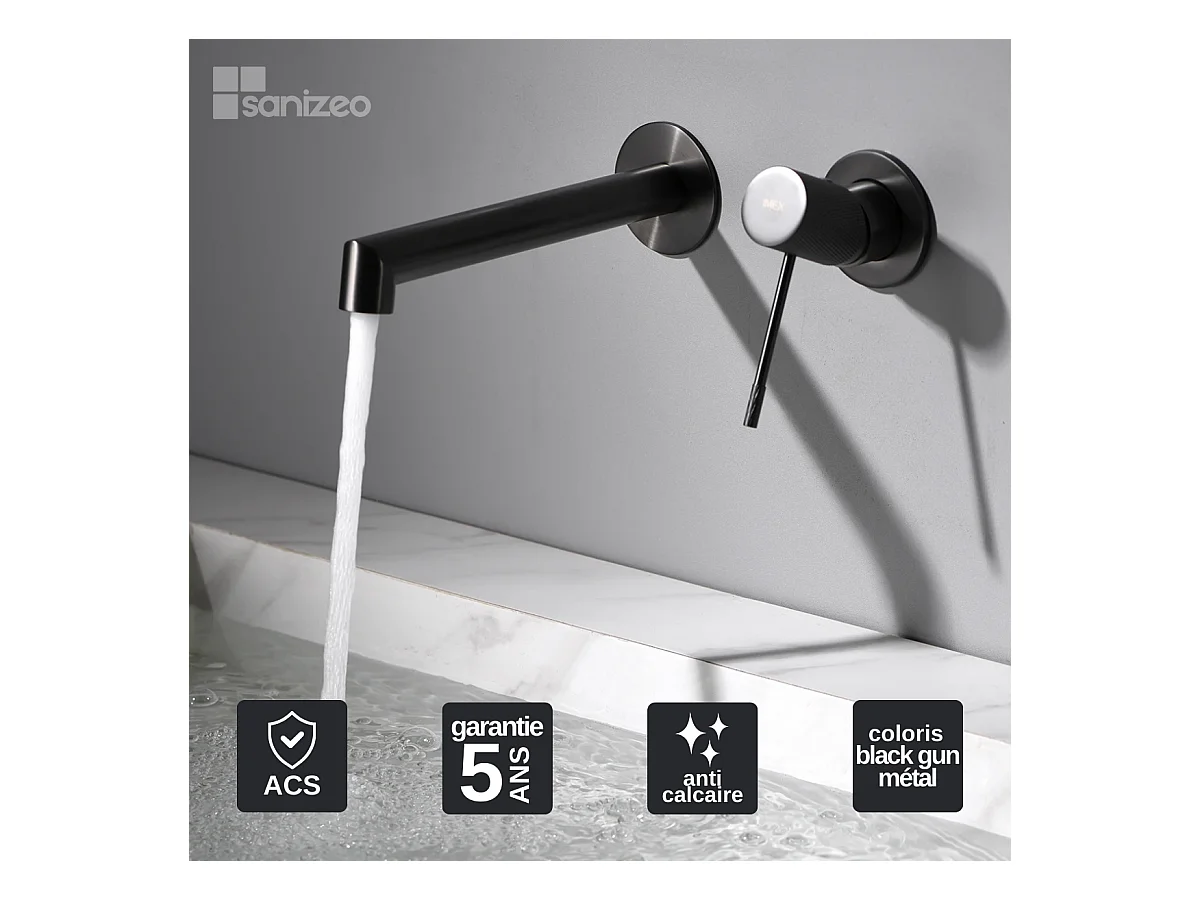 Mitigeur Lavabo Encastré Salle de Bain noir métal – Anti-Calcaire – Design moderne - LINE IMEX
