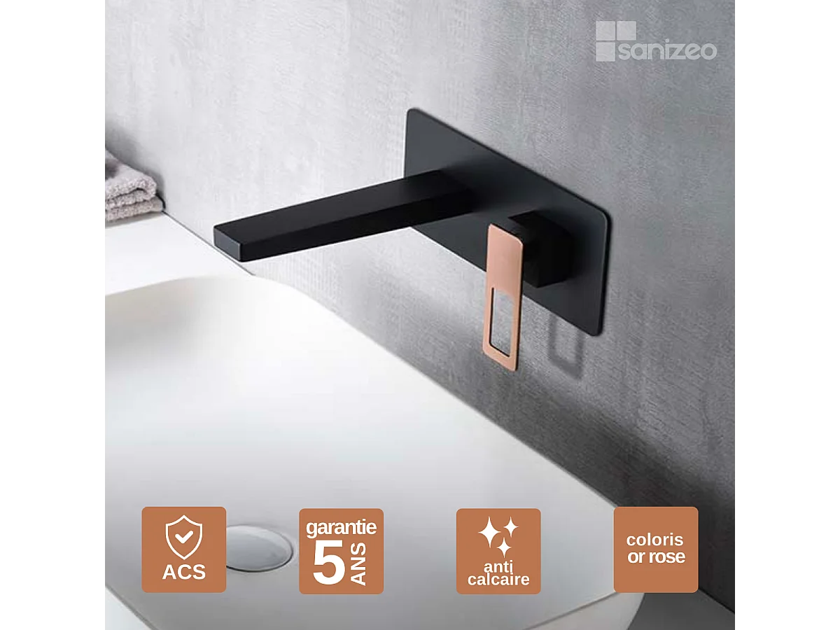 Mitigeur Lavabo Encastré Salle de Bain noir/or rose – Bec Haut Anti-Calcaire – Design Moderne - SUECIA IMEX