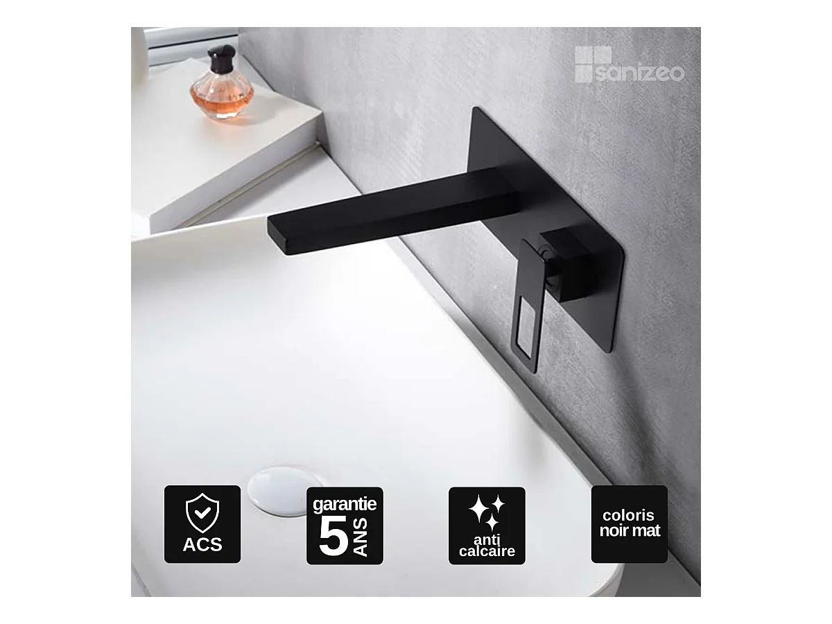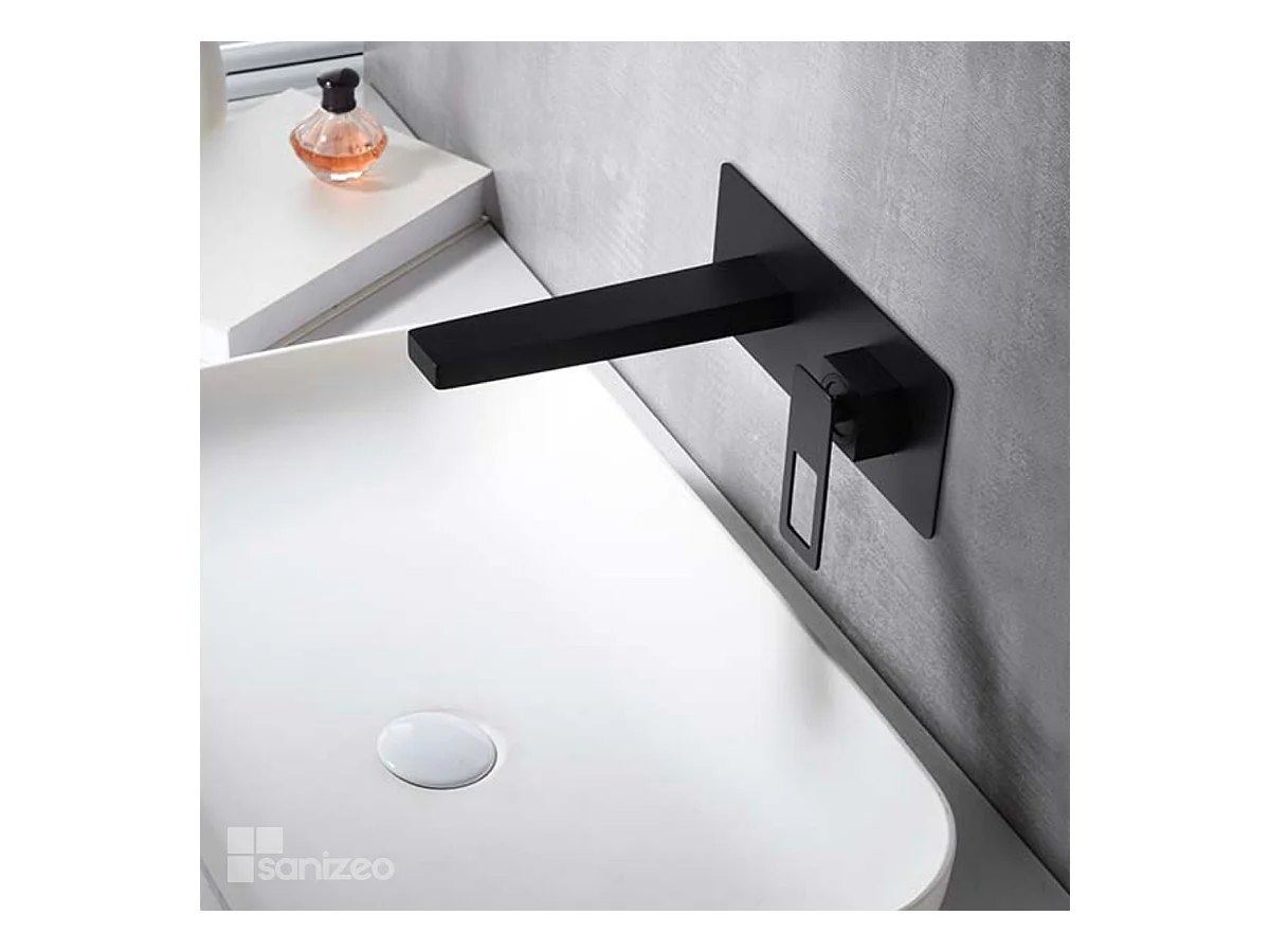 Mitigeur Lavabo Encastré Salle de Bain noir mat – Bec Haut Anti-Calcaire – Design Moderne - SUECIA IMEX