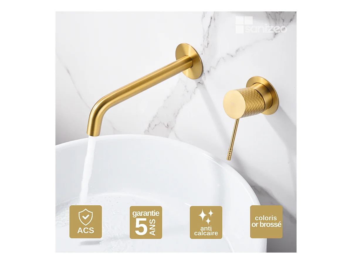 Mitigeur Lavabo Encastré Salle de Bain or brossé – Anti-Calcaire – Design moderne - DELOS IMEX
