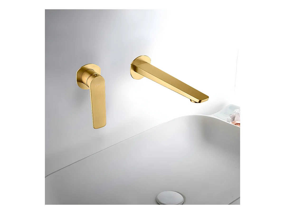Mitigeur Lavabo Encastré Salle de Bain or brossé – Anti-Calcaire – Design moderne - DELOS IMEX