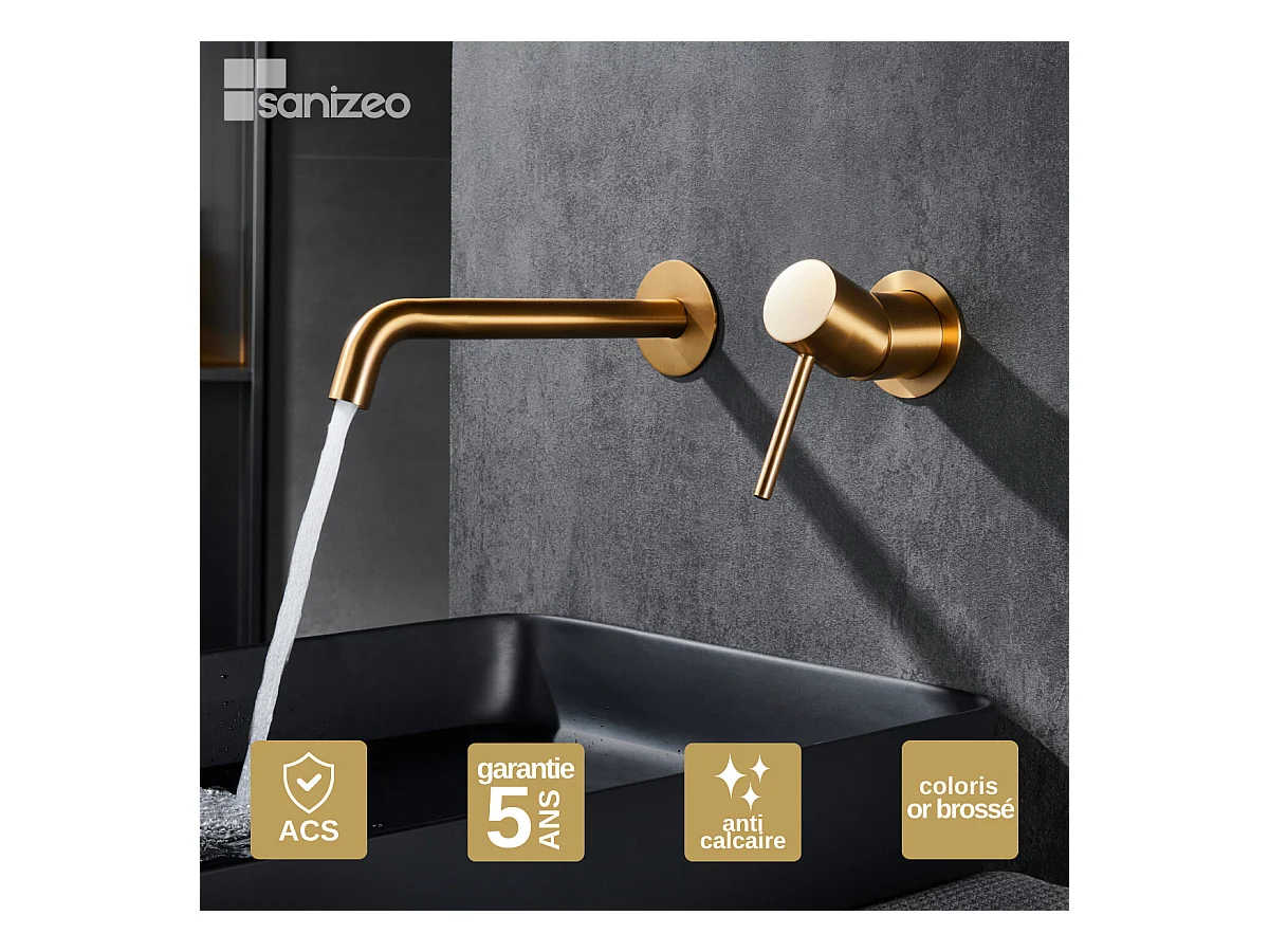 Mitigeur Lavabo Encastré Salle de Bain or brossé – Anti-Calcaire – Design moderne - DELOS IMEX