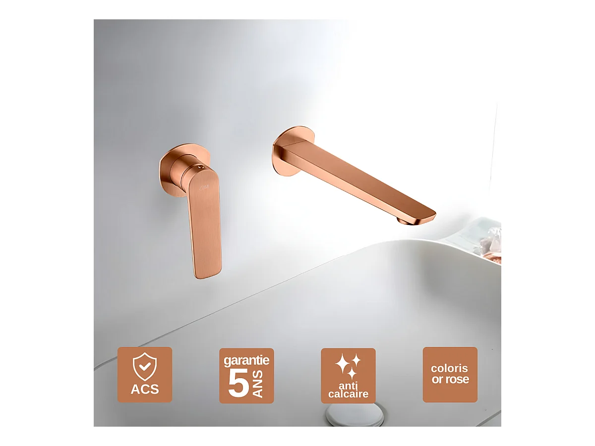 Mitigeur Lavabo Encastré Salle de Bain or rose cuivré – Anti-Calcaire – Design Moderne - DELOS IMEX
