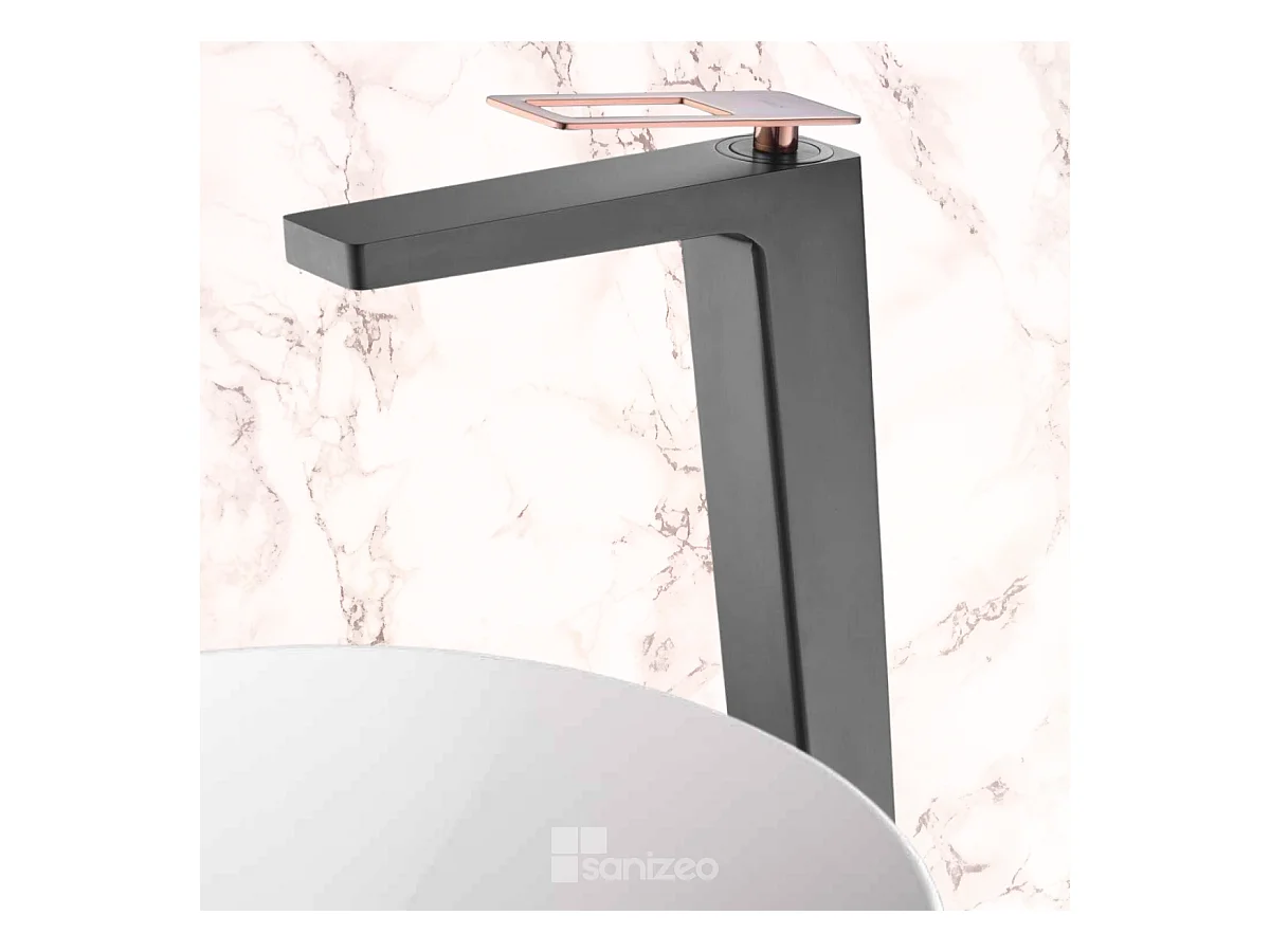 Mitigeur Lavabo Salle de Bain noir/or rose – Bec Haut Anti-Calcaire – Design Moderne - SUECIA IMEX