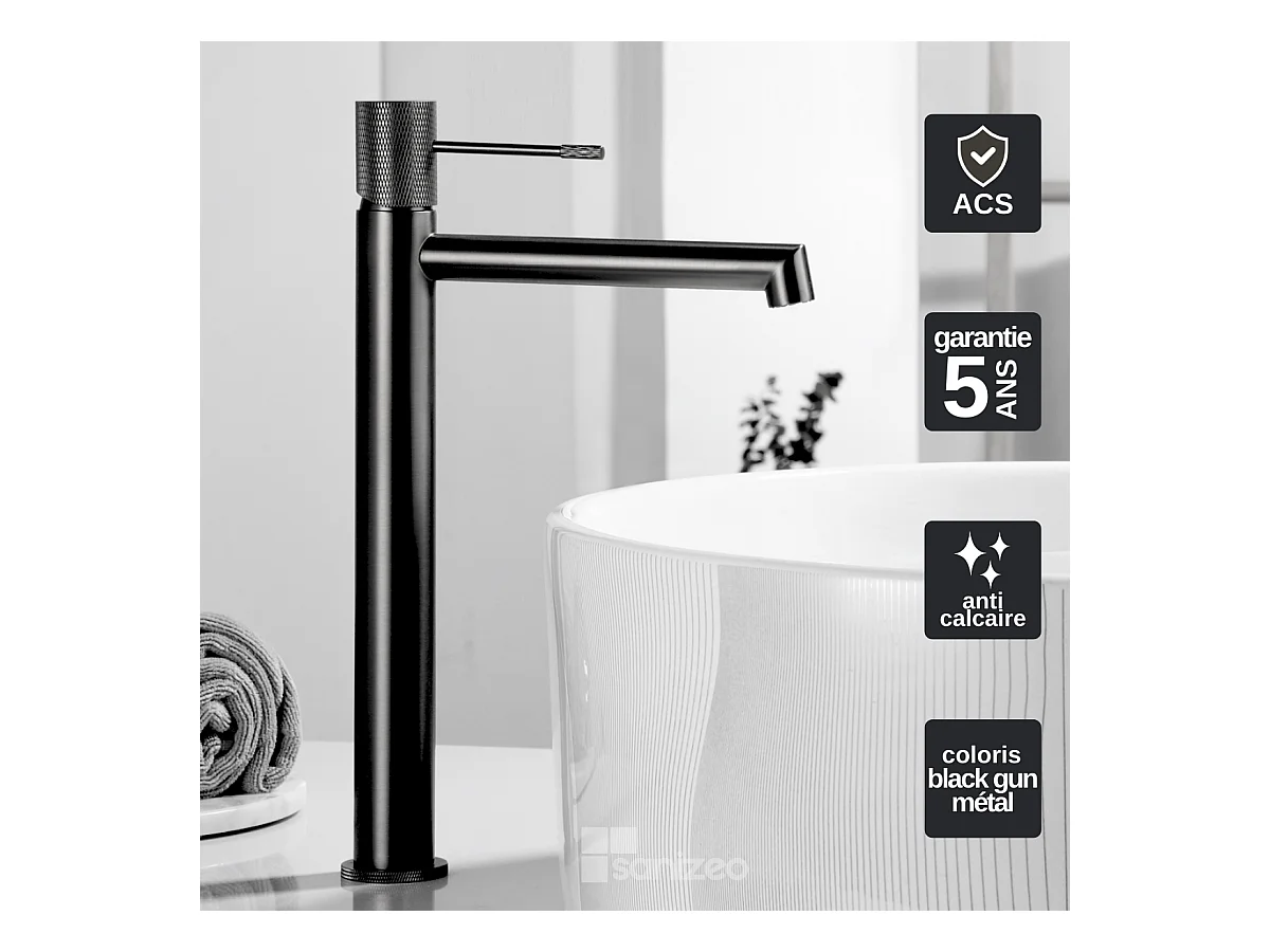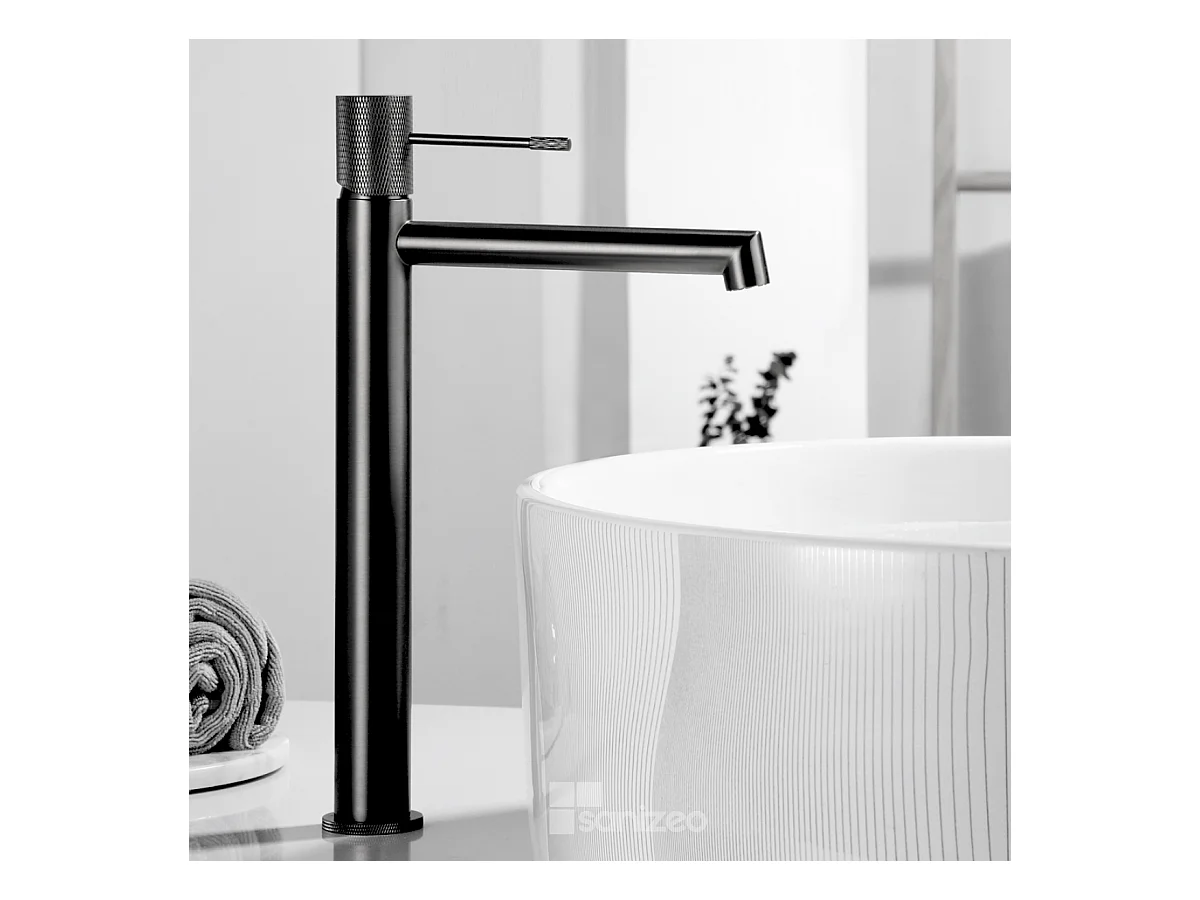 Mitigeur Lavabo Salle de Bain noir métal – Bec Haut Anti-Calcaire – Design moderne - LINE IMEX