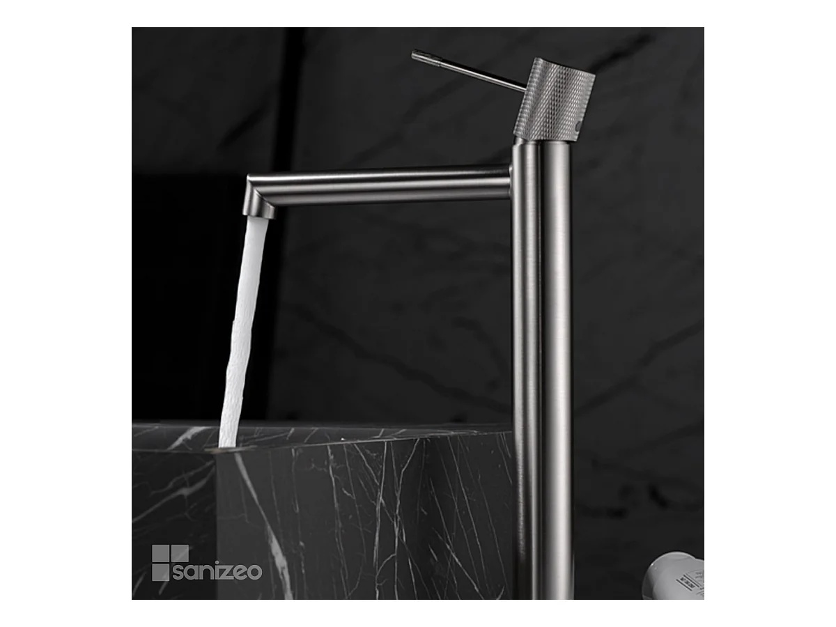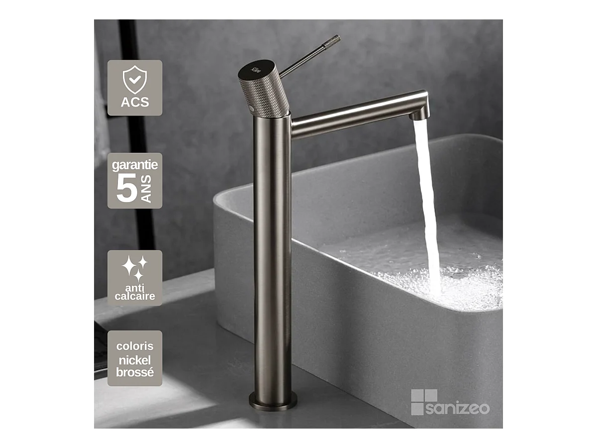 Mitigeur Lavabo Salle de Bain niquel brossé – Bec Haut Anti-Calcaire – Design Moderne - LINE IMEX