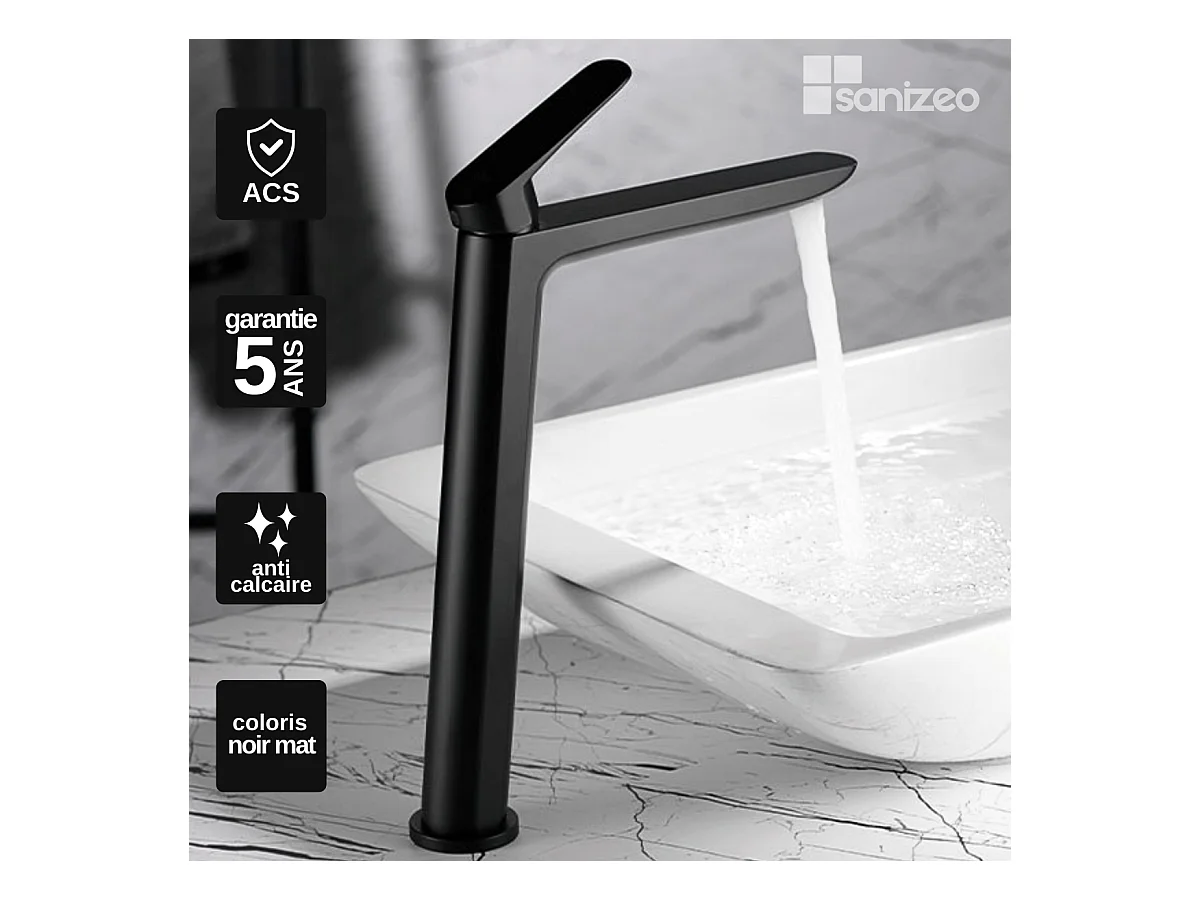 Mitigeur Lavabo Salle de Bain noir mat – Bec Haut Anti-Calcaire – Design moderne - LUXOR IMEX