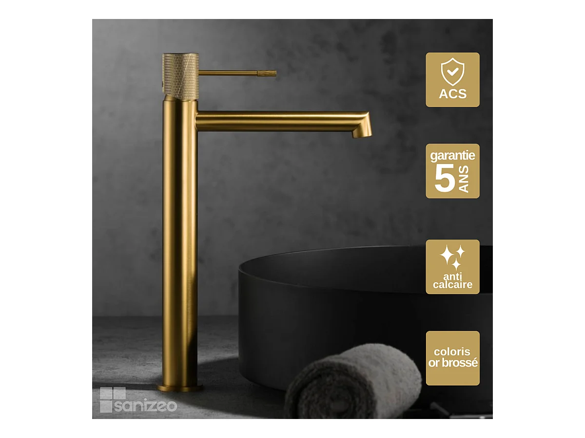 Mitigeur Lavabo Salle de Bain or brossé – Bec Haut Anti-Calcaire – Design moderne - LINE IMEX