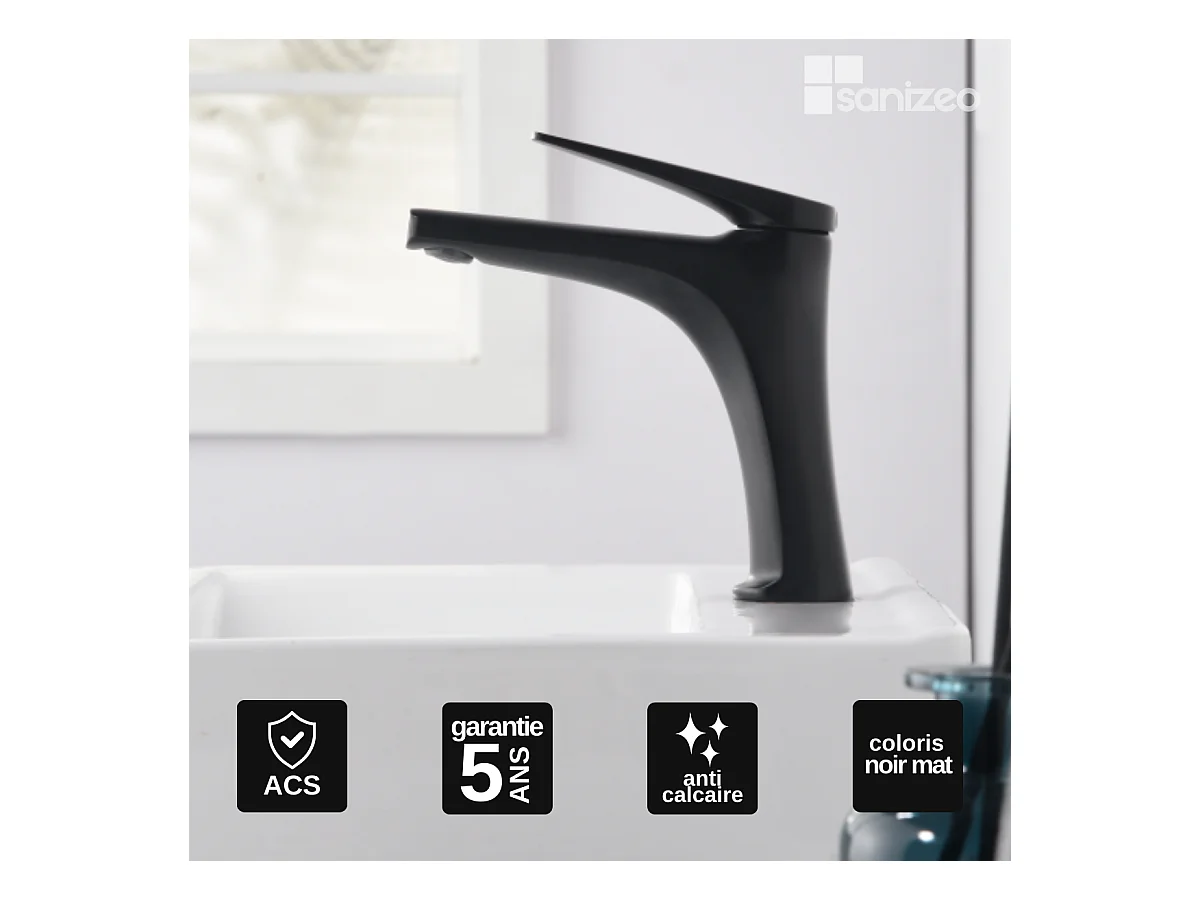 Mitigeur Lavabo Salle de Bain noir mat – Bec Bas Anti-Calcaire – Design moderne - DELOS IMEX