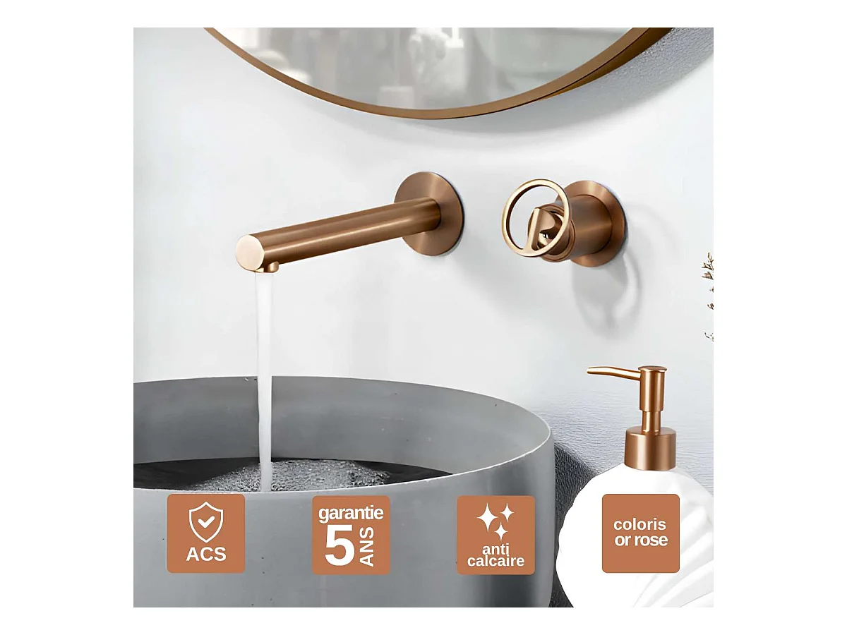 Mitigeur Lavabo Encastré Salle de Bain or rose cuivré – Anti-Calcaire – Design Moderne - DELOS IMEX