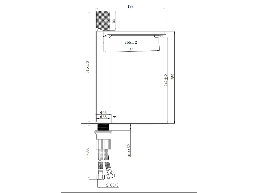 Robinet mitigeur haut strié chrome