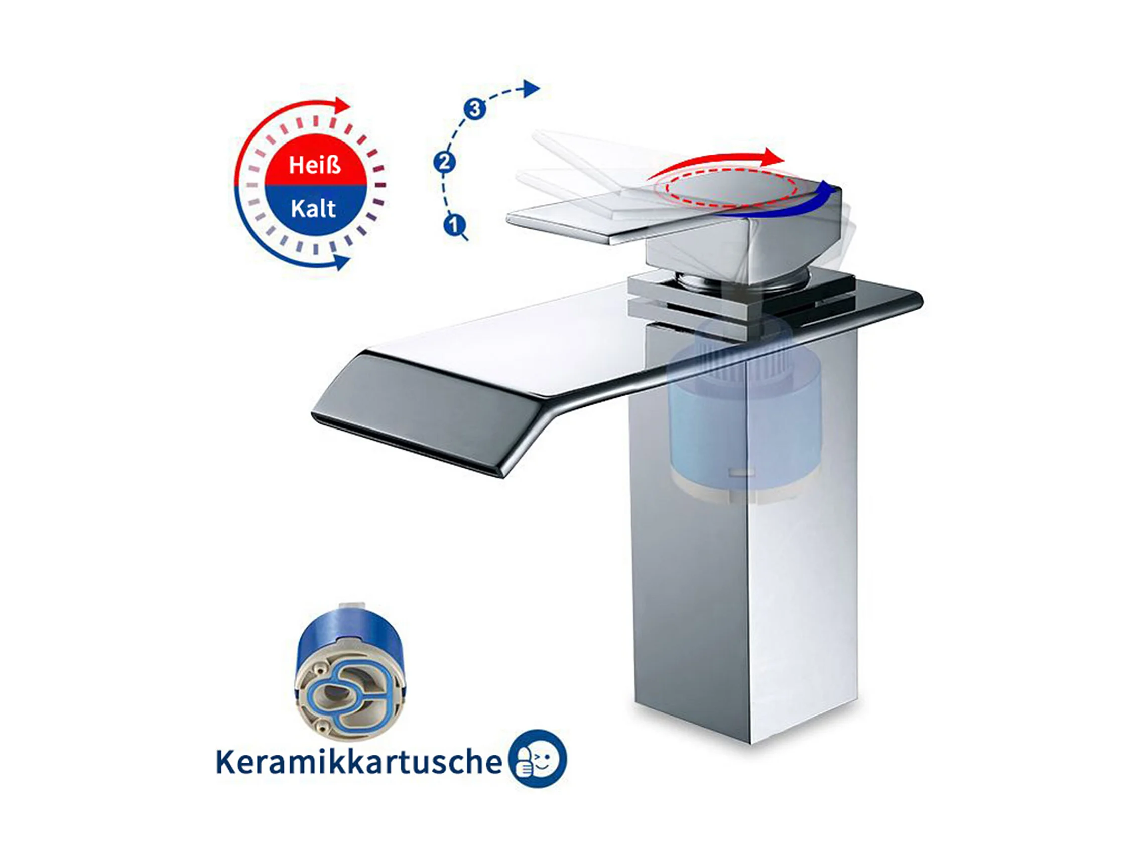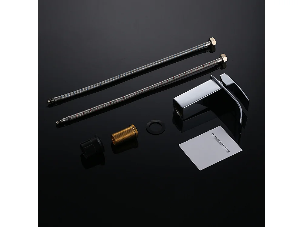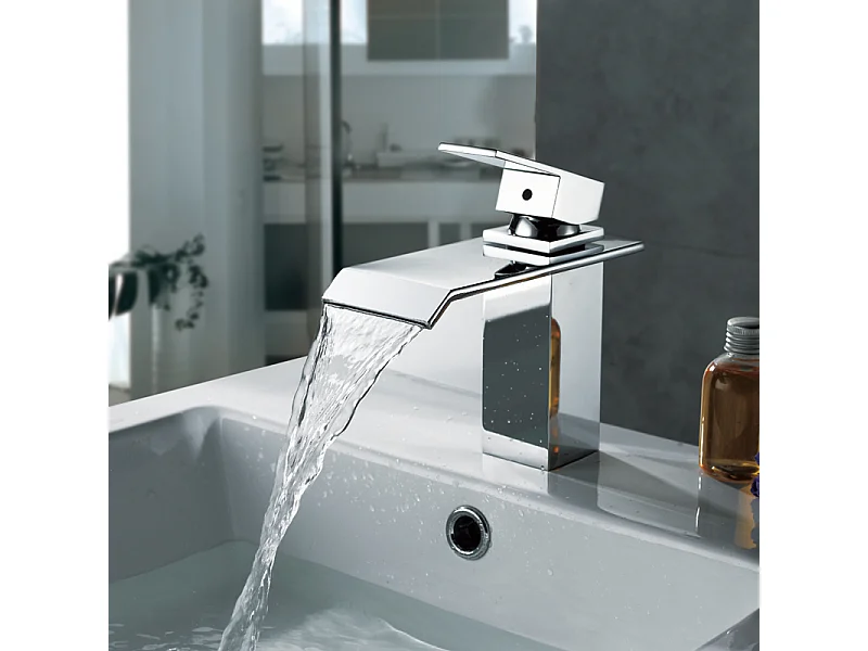 Robinet Salle de Bain Cascade Robinet de Lavabo en Laiton Mitigeur de Salle de Bain Chromé Forme Carré