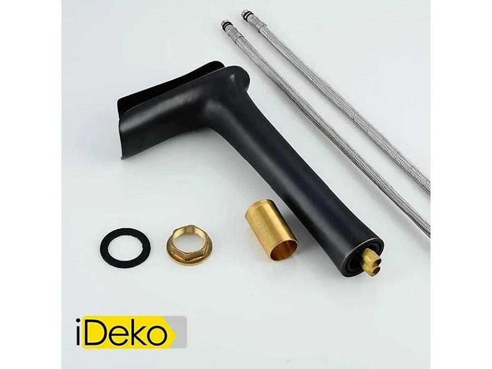 Robinet de salle de bain Mitigeur de lavabo cascade haut de gamme, flexible noir
