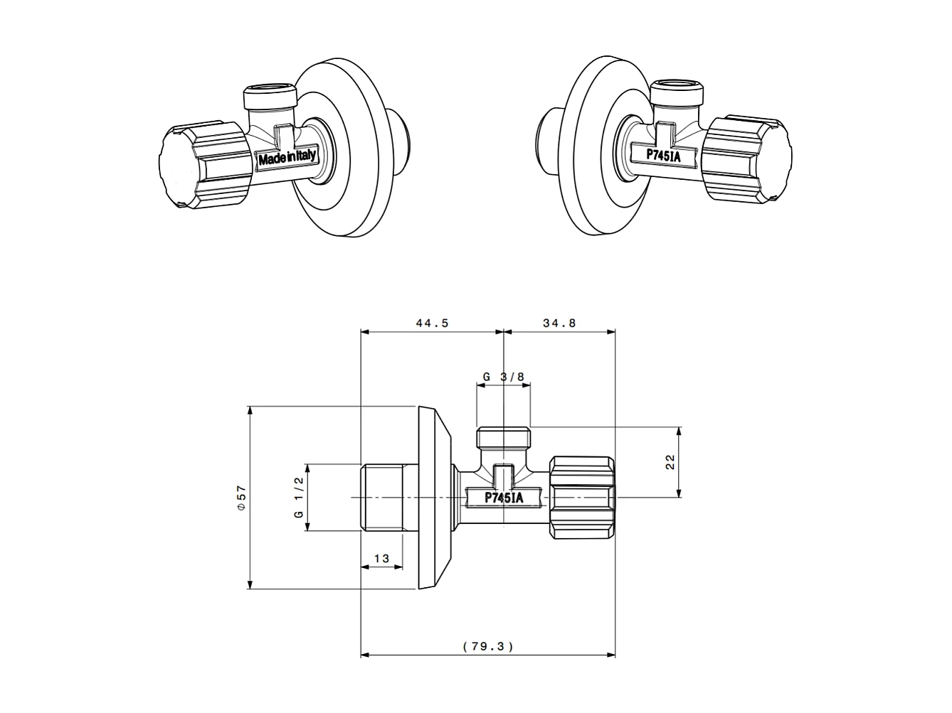 Robinet Sous Lavabo 1/2X3/8 Avec Poignée Hexagonale