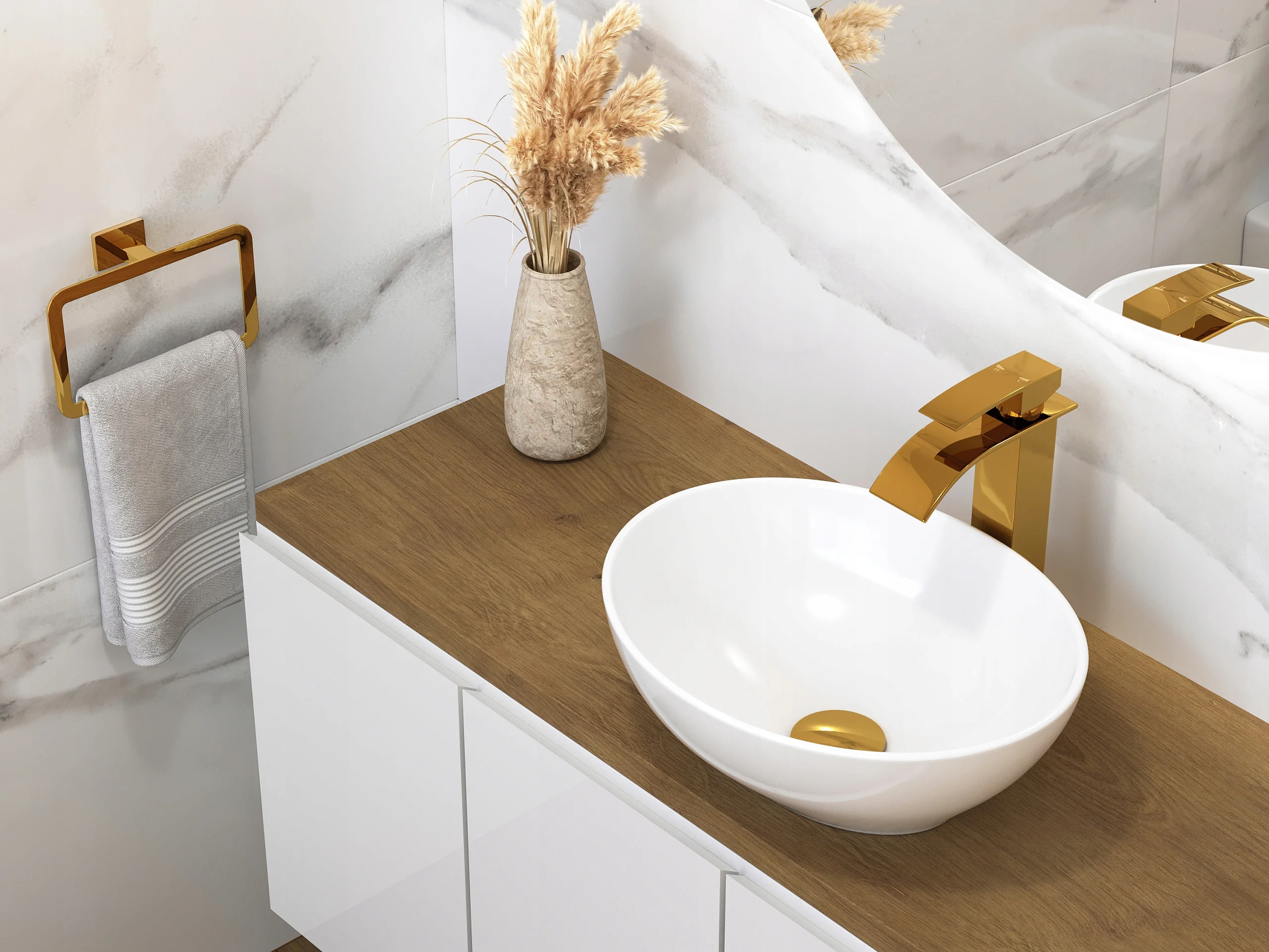 Robinetterie de lavabo cascade haute pour salle de bain or elva 85111924