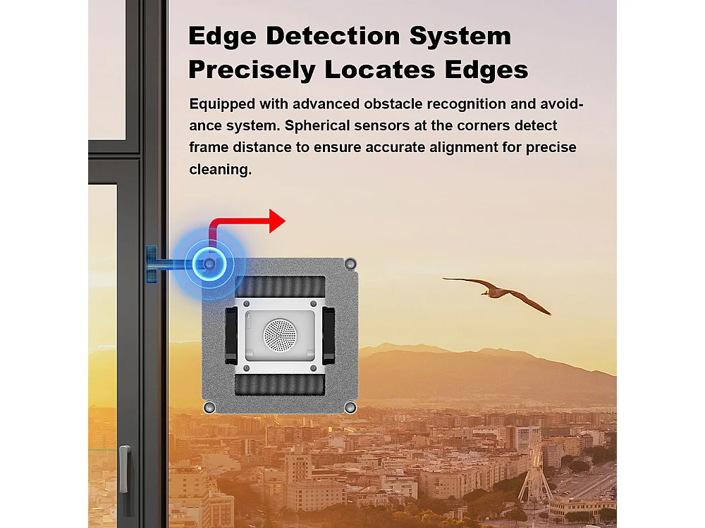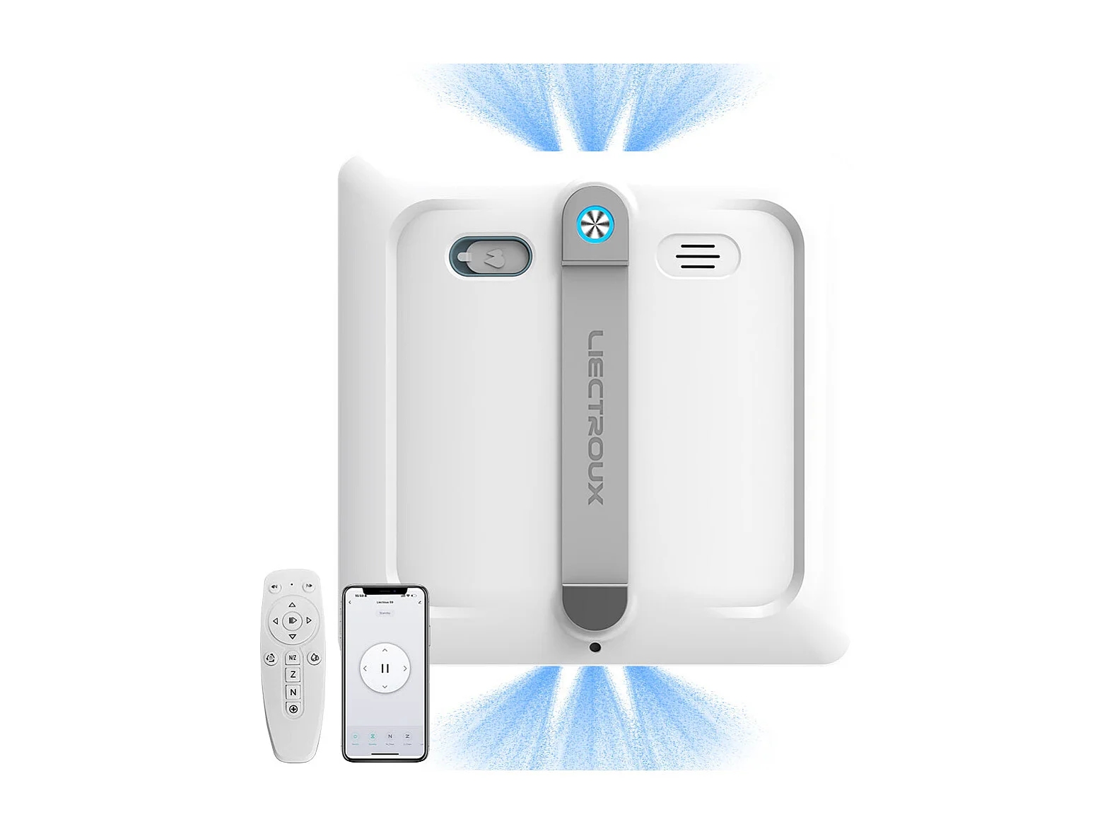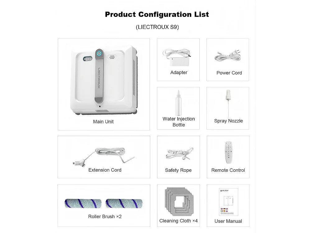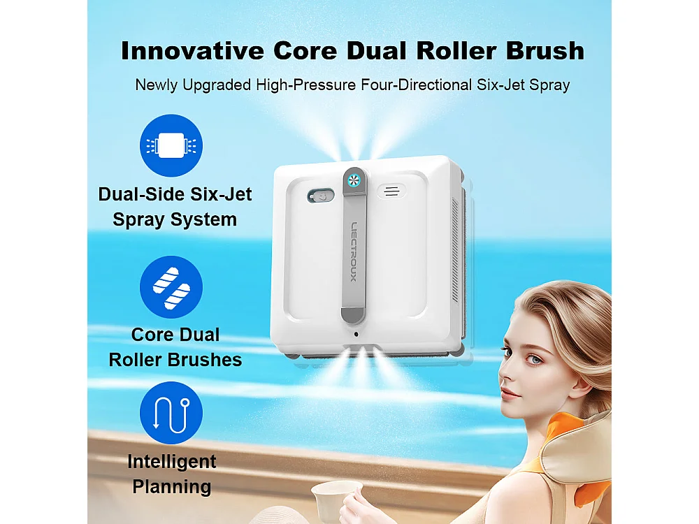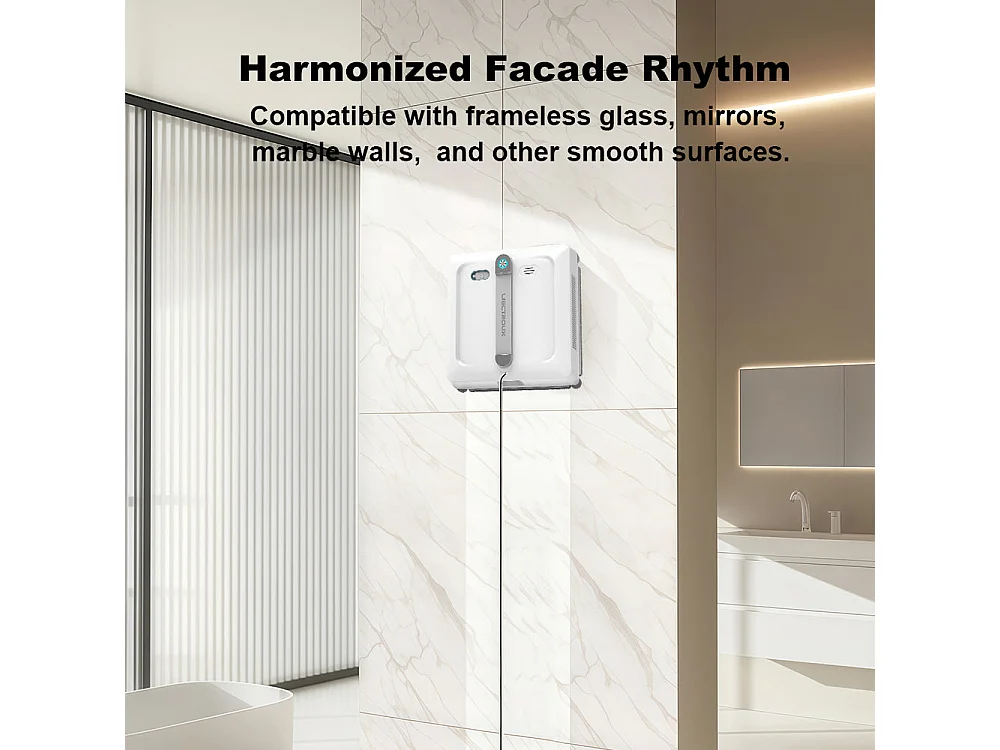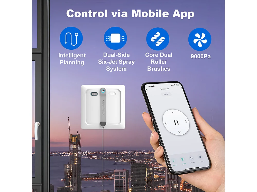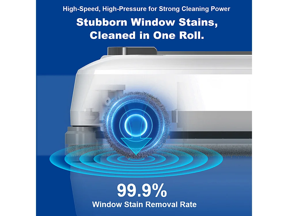 Robot lave-vitres S9, avec 2 brosses rotatives, pompe à eau à 6 jets, moteur sans balais, aspiration de 9 kPa, 8 micro-interrupteurs,app, instructions vocales.