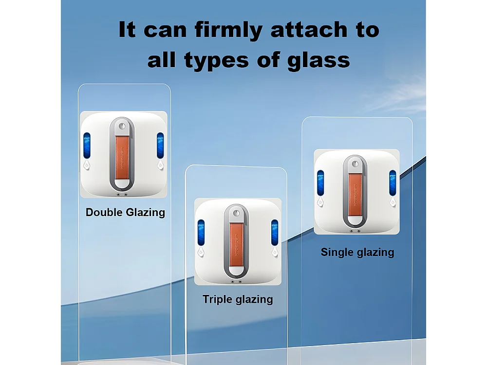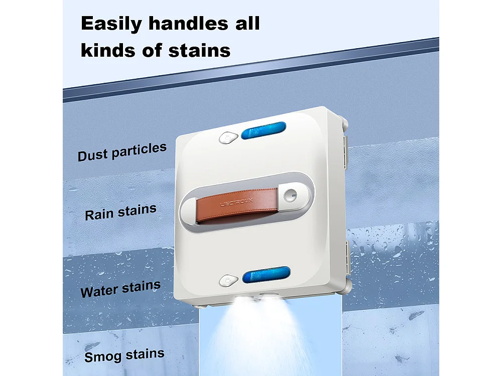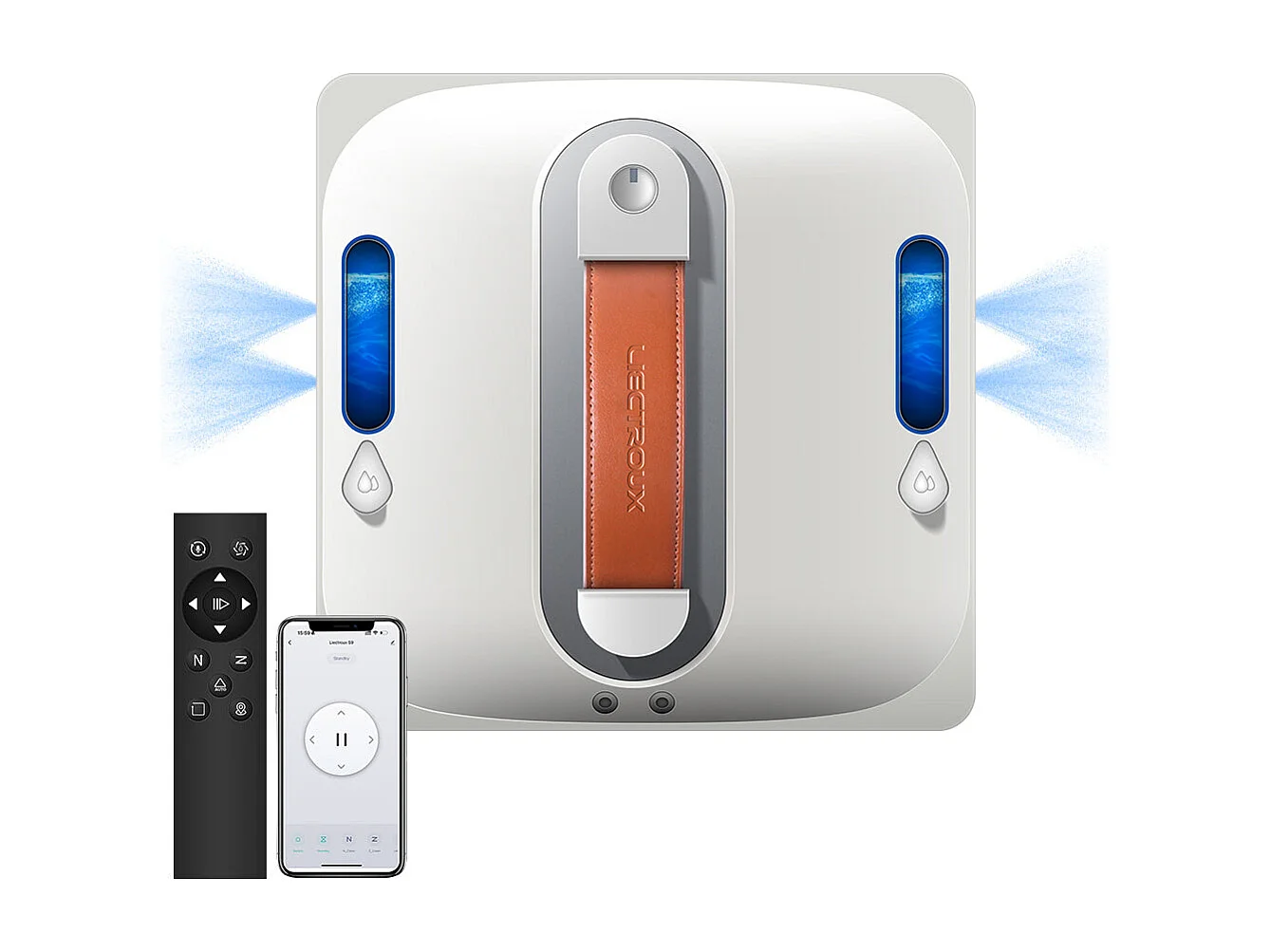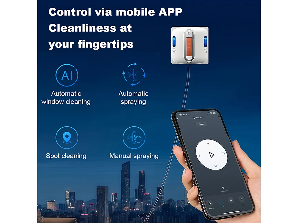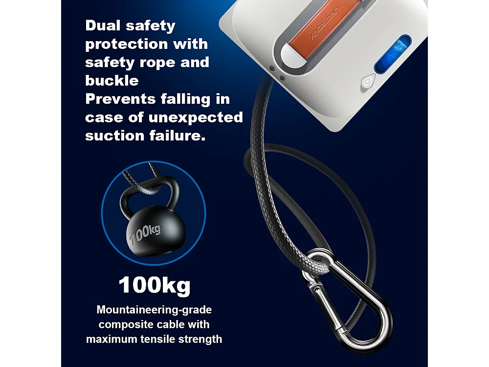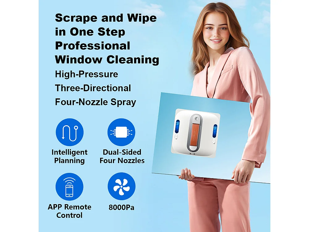 Robot lave-vitres S9, avec 2 brosses rotatives, pompe à eau à 6 jets, moteur sans balais, aspiration de 9 kPa, 8 micro-interrupteurs,app, instructions vocales.