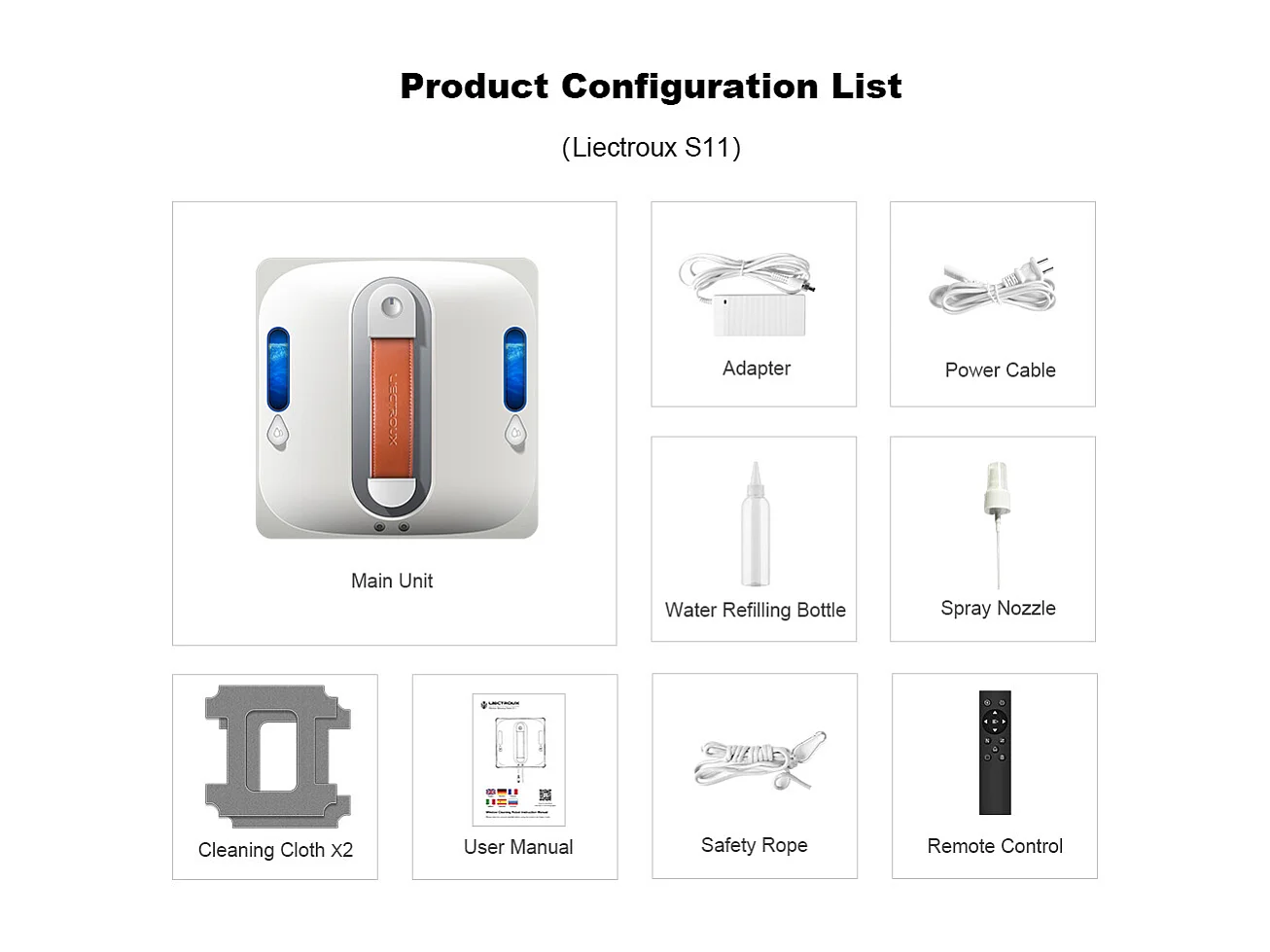 Robot nettoyeur de fenêtres Liectroux S11, Pulvérisation d'eau 4 directions, Robot nettoyeur pour vitres, sols et carreaux de murs domestiques