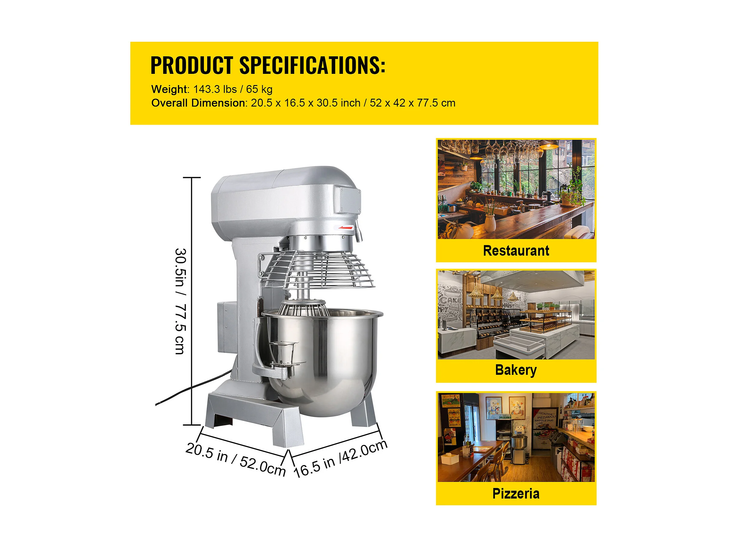 Robot Pâtissier SucceBuy Mélangeur à Pâte Commercial 20 Qt, Mélangeur Industriel à 3 Vitesses pour Boulangeries