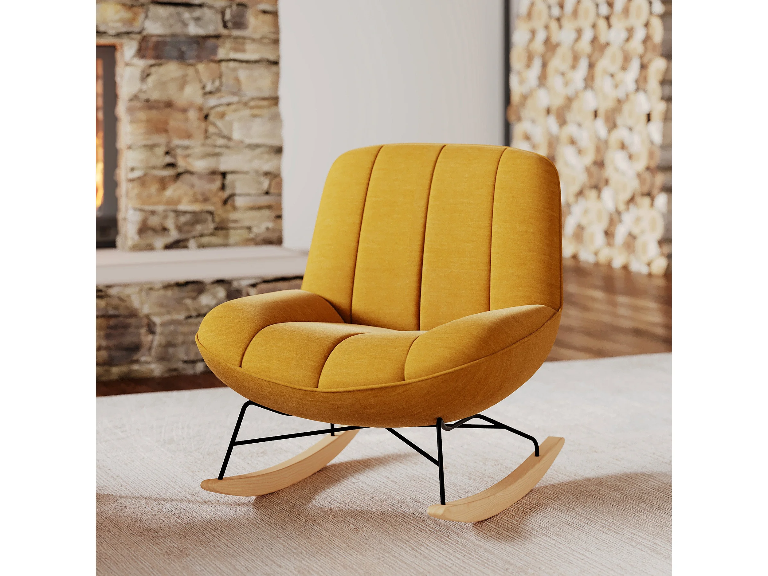 Rocking chair en tissu effet velours jaune moutarde - Alvin