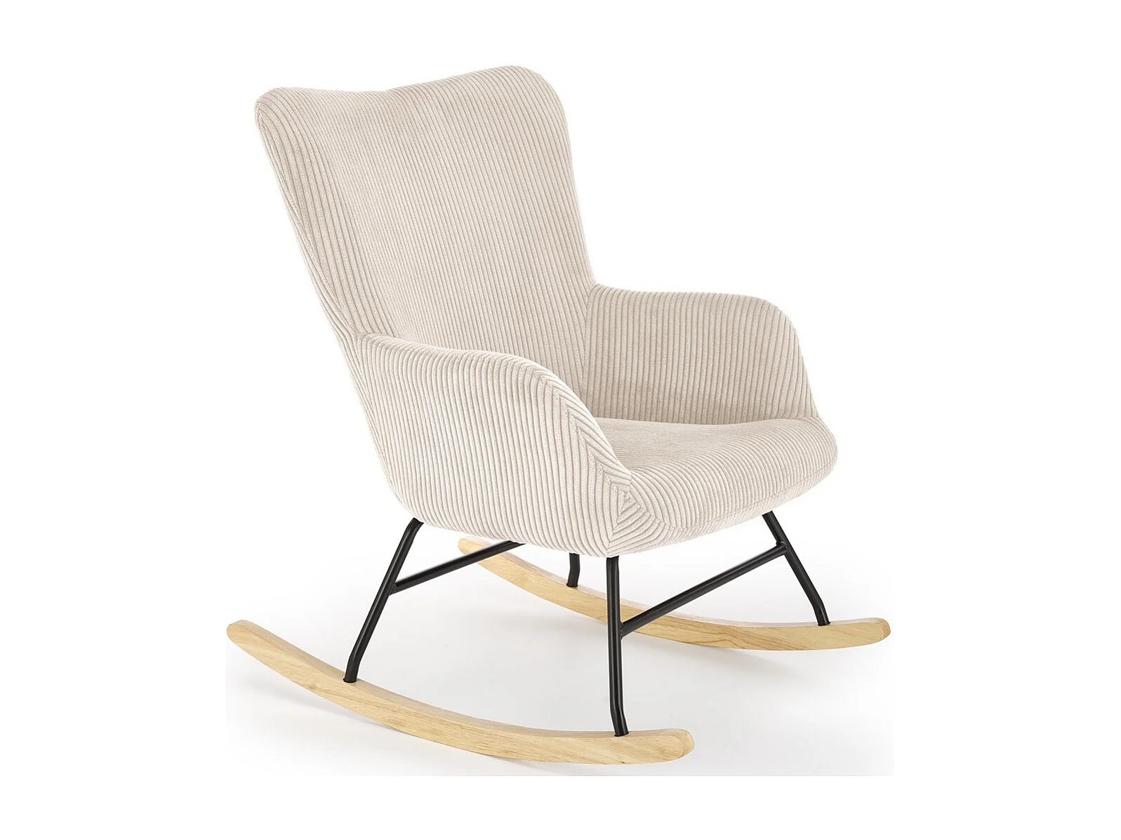Rocking-Chair confort en velours côtelé beige avec accoudoirs Primrose