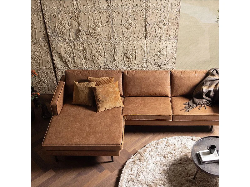 Grand canapé d'angle gauche cuir rétro COLORADO