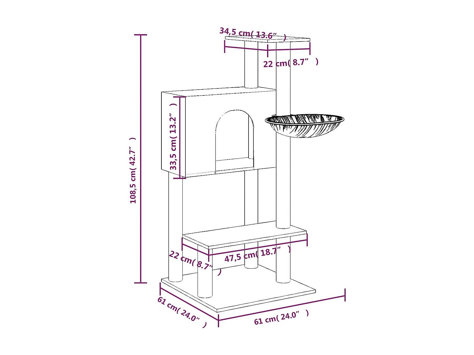 Rødhild Arbre à chat avec griffoirs en sisal Gris foncé 108,5 cm