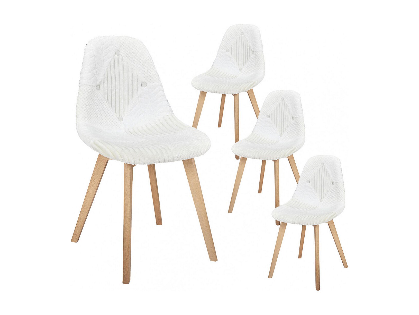 ROHAN - Lot de 4 Chaises Imitation Laine Motif Patchwork Blanc