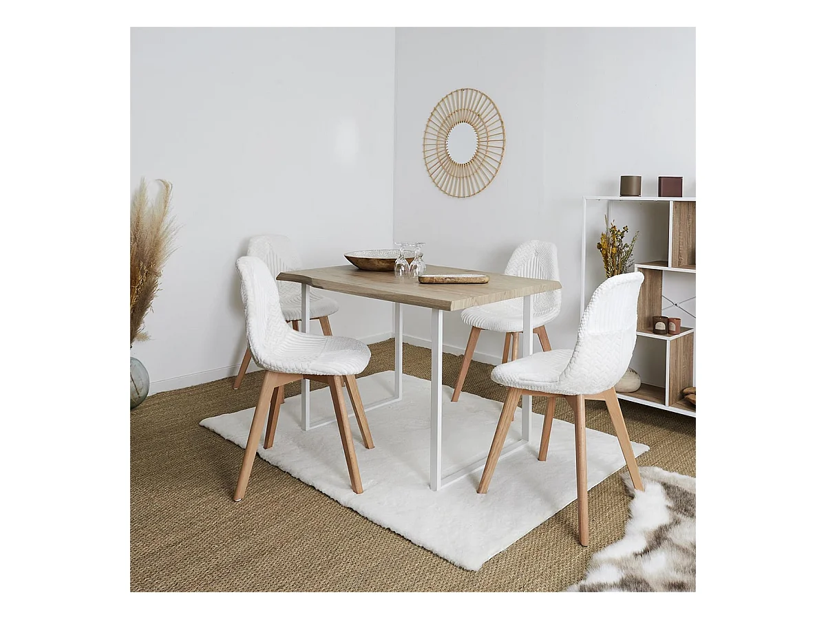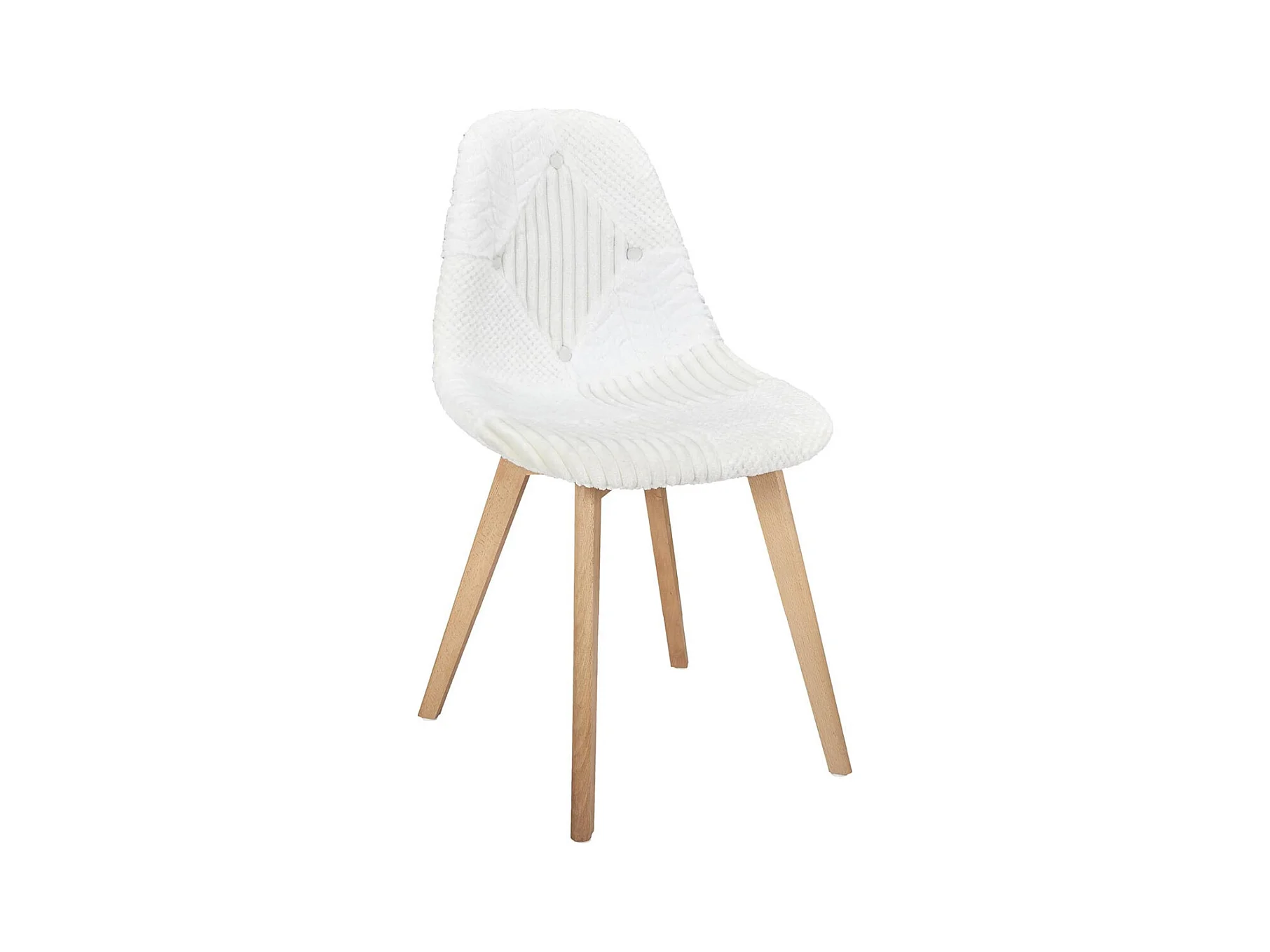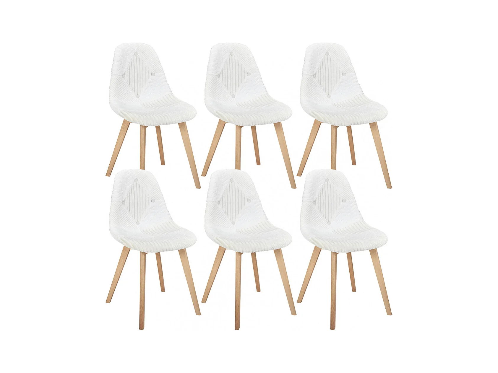 ROHAN - Lot de 6 Chaises Imitation Laine Motif Patchwork Blanc