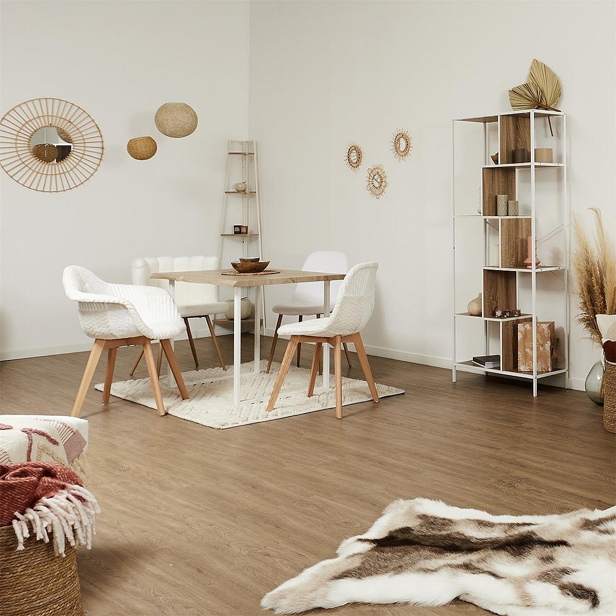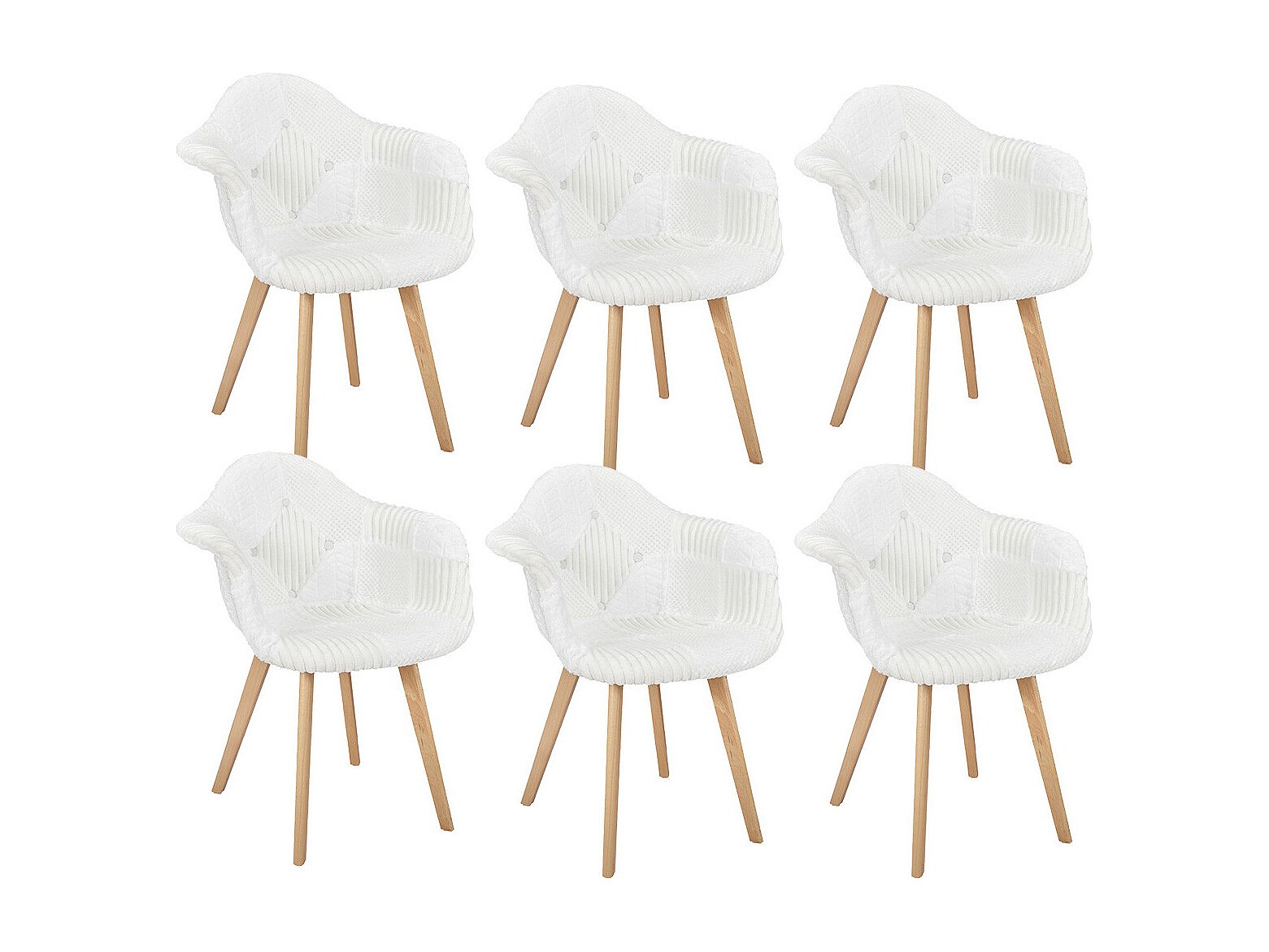 ROHAN - Lot de 6 Fauteuils Imitation Laine Motif Patchwork Blanc