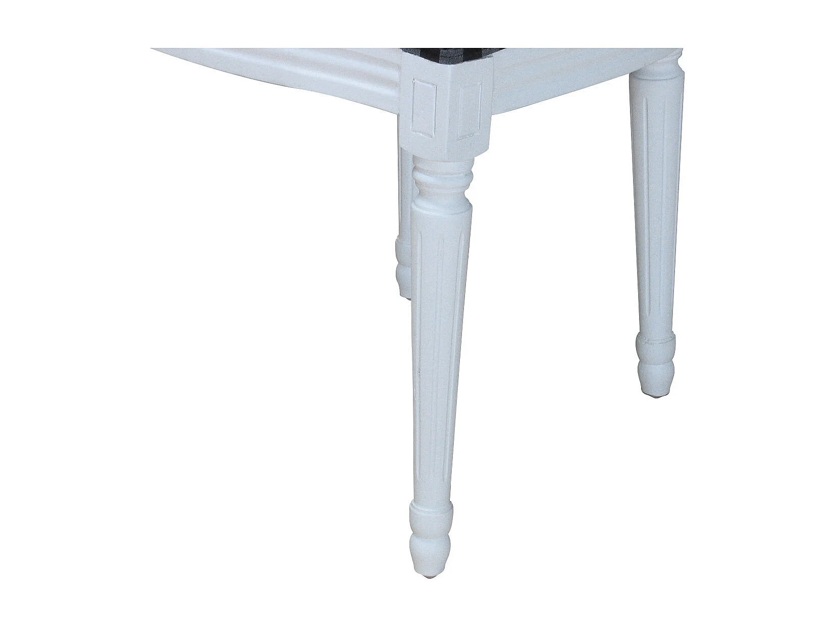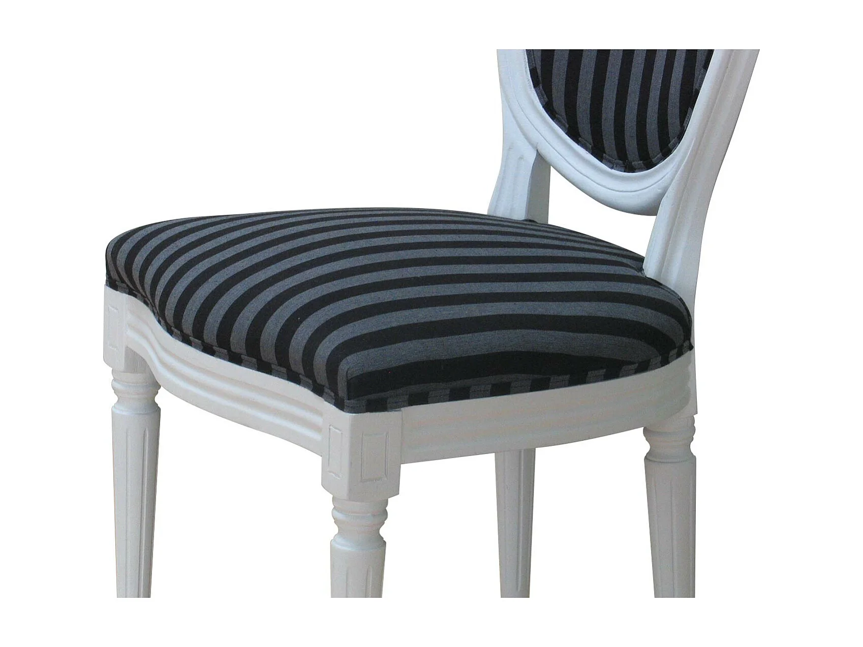 Rokoko chaise de salle à manger blanche avec tissu à rayures noires.