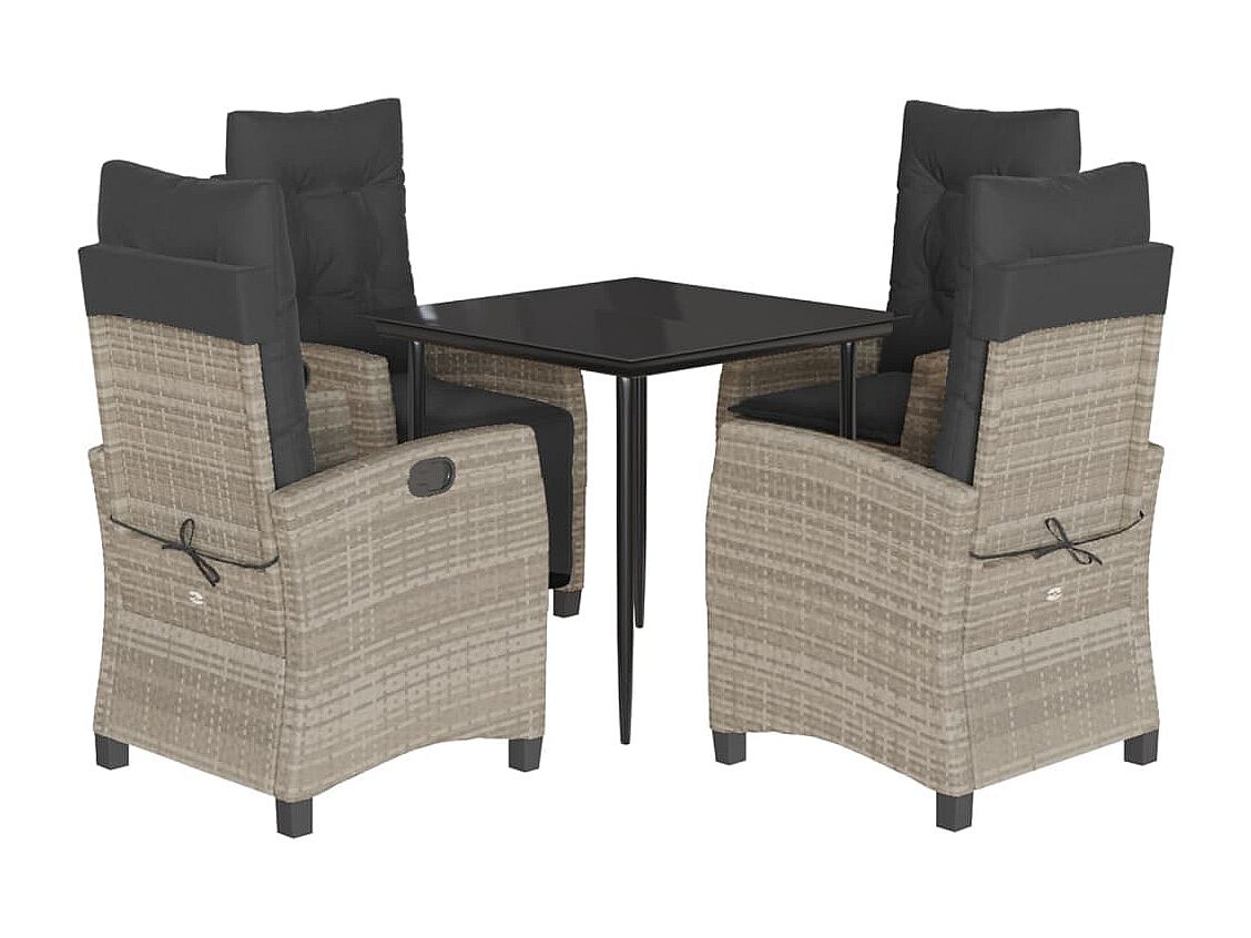Roland Ensemble à manger de jardin et coussins 5 pcs gris clair rotin