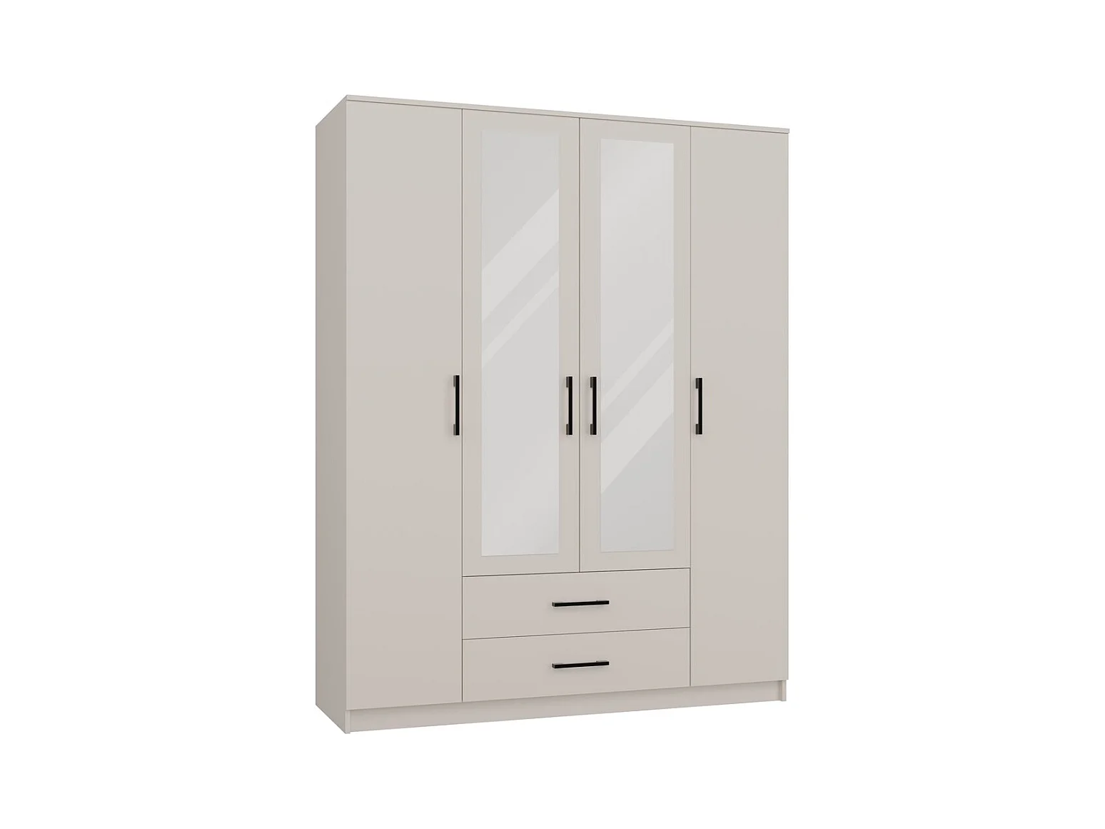 ROMA - Grande armoire de chambre 4 portes avec 2 miroirs - 160x52x205 cm - 2 tiroirs - Armoire avec penderie