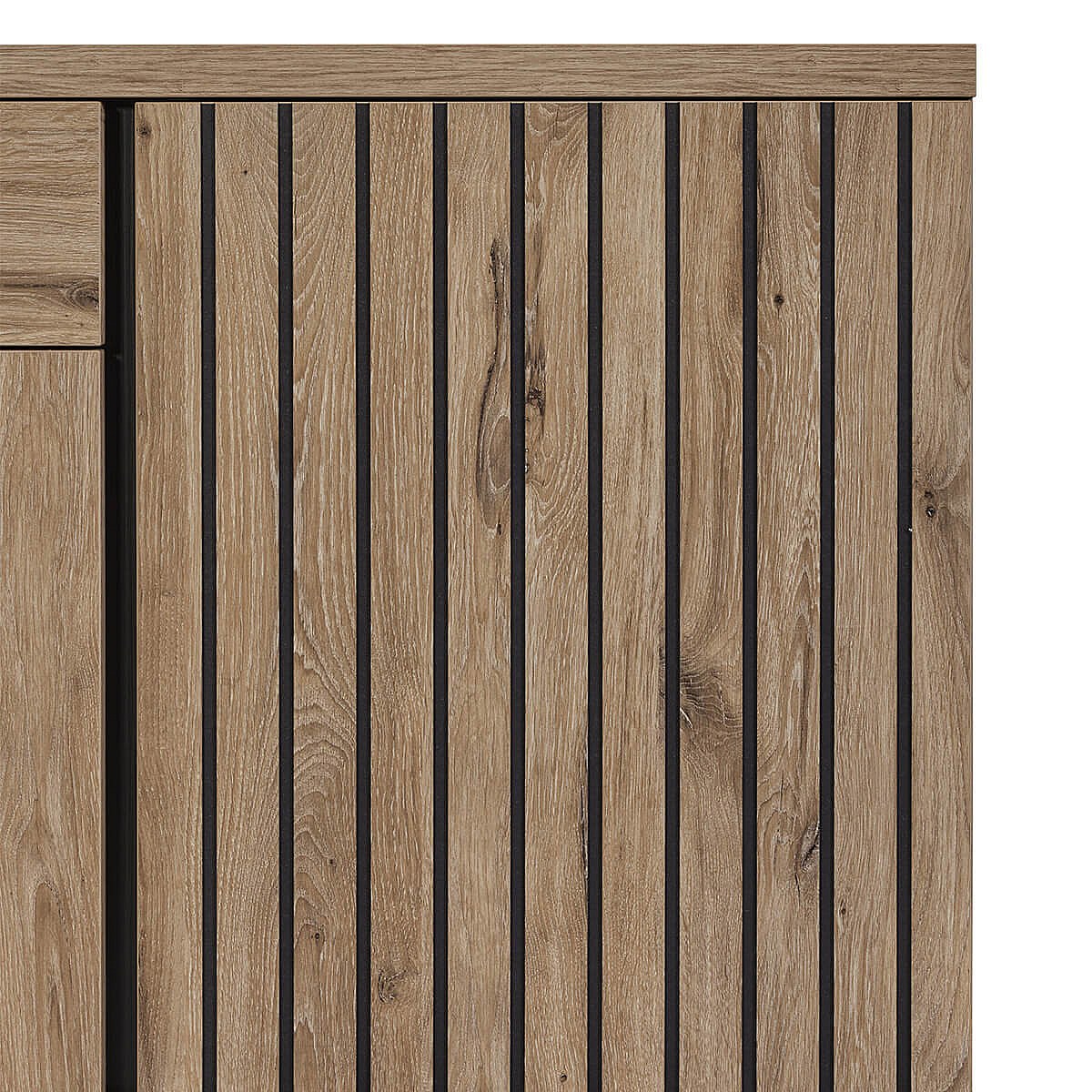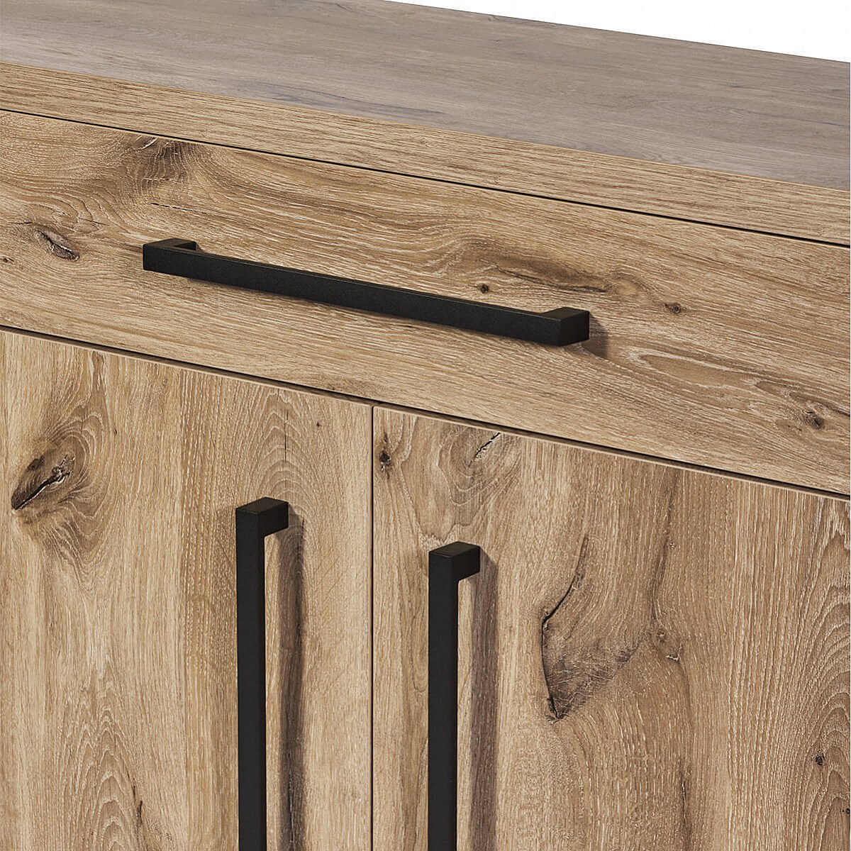 ROMY - Buffet 4 Portes 1 Tiroir Aspect Bois Finition Canyon Oak Effet Tasseaux