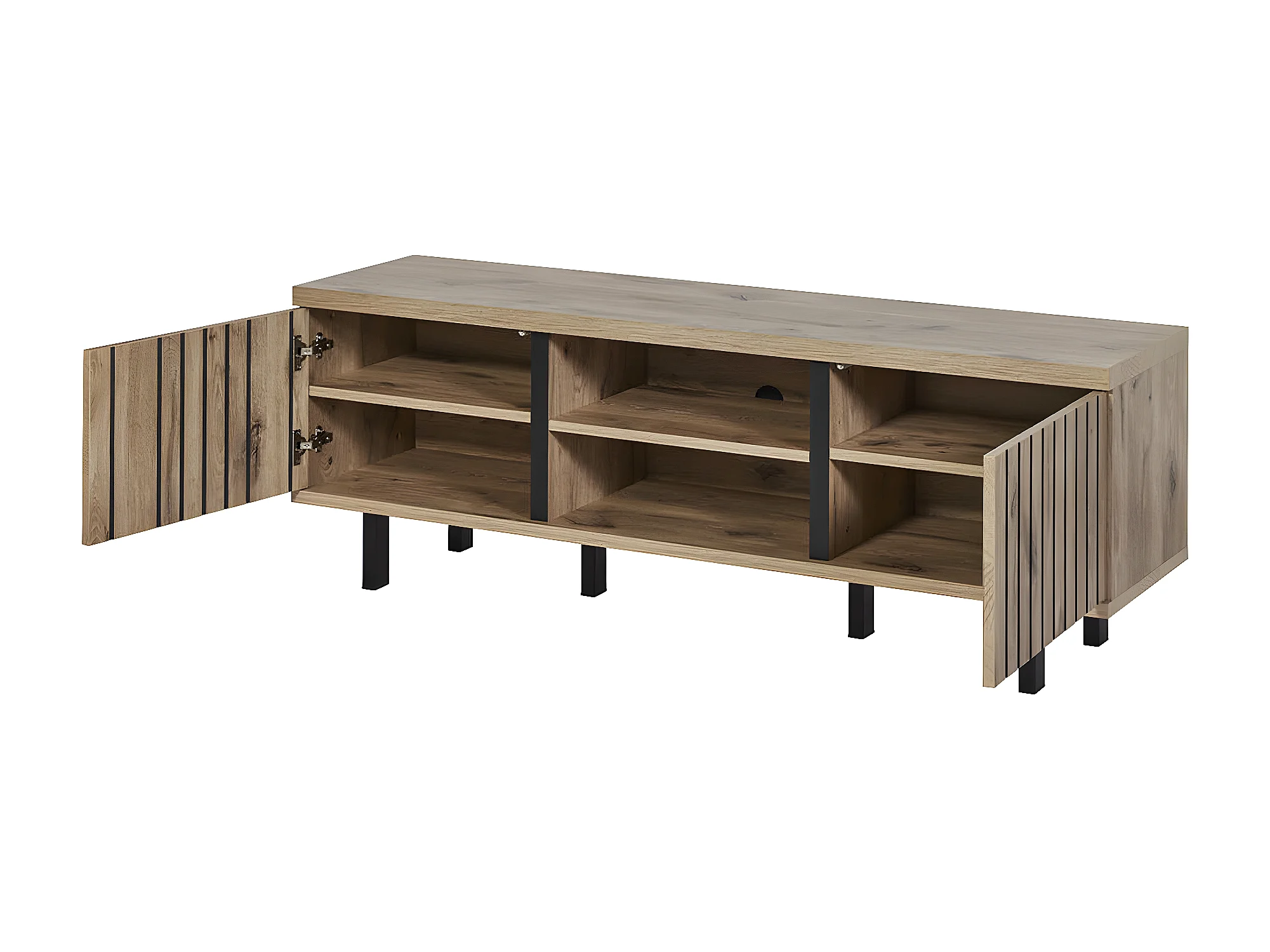 ROMY - Meuble TV 2 Portes 2 Niches Aspect Bois Finition Canyon Oak Effet Tasseaux